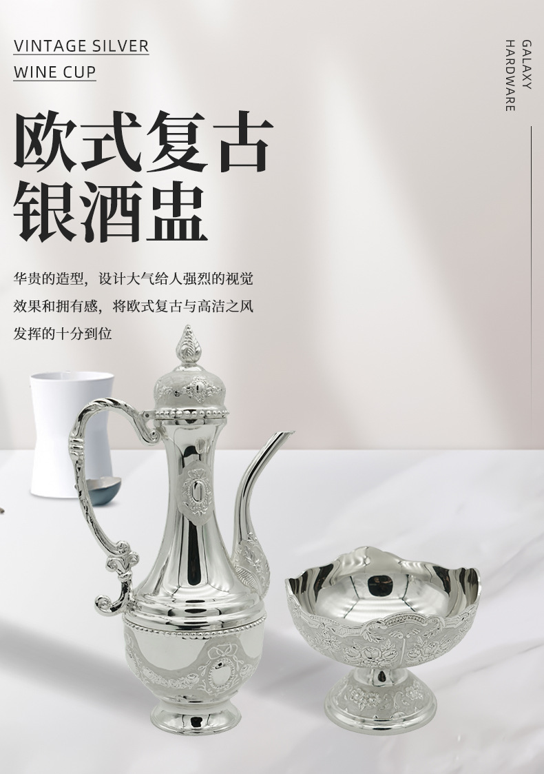 古中国式家庭用酒壺銀メッキ酒具セットワイングラス酒壺純銀家庭用ヨーロッパ式贈答品