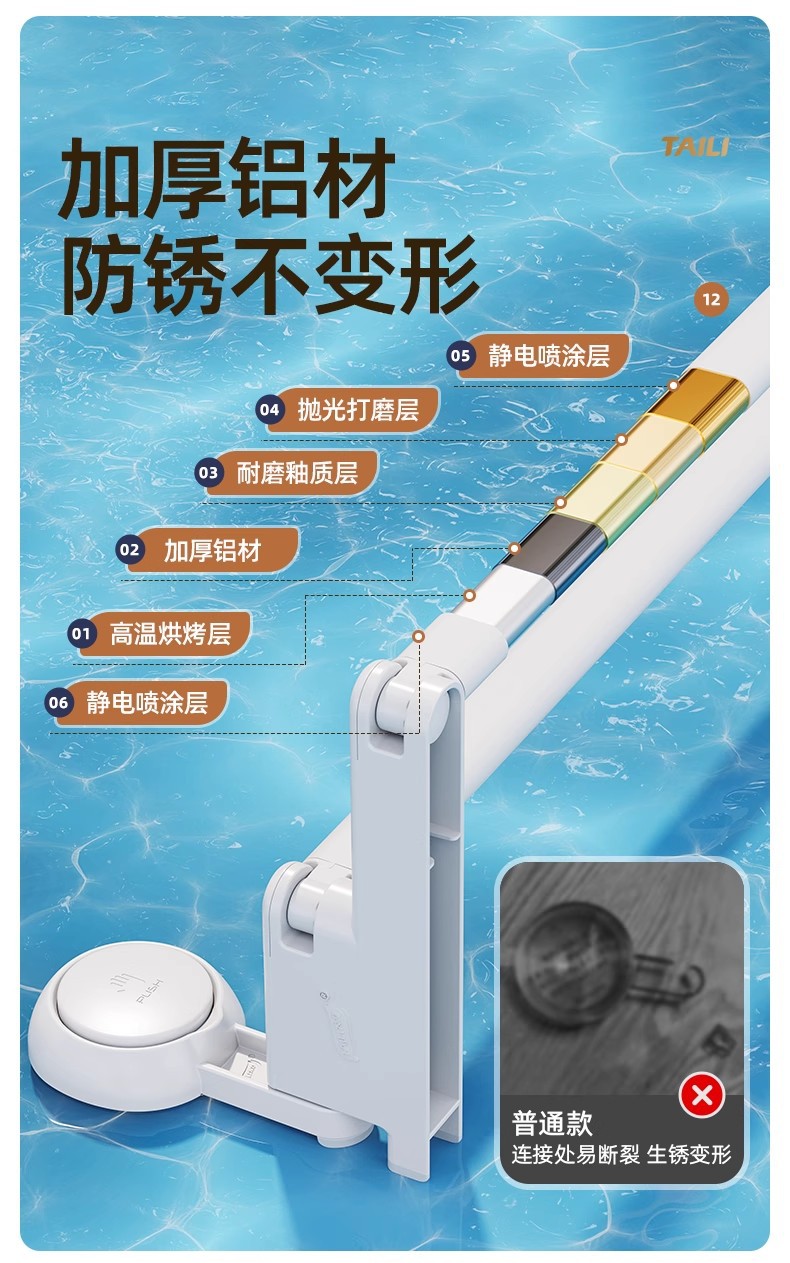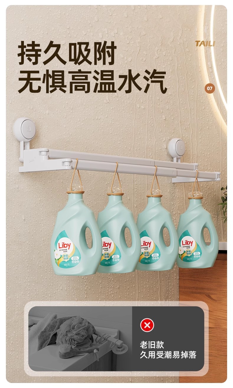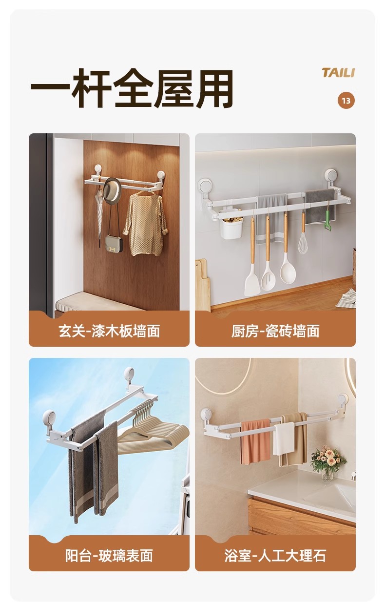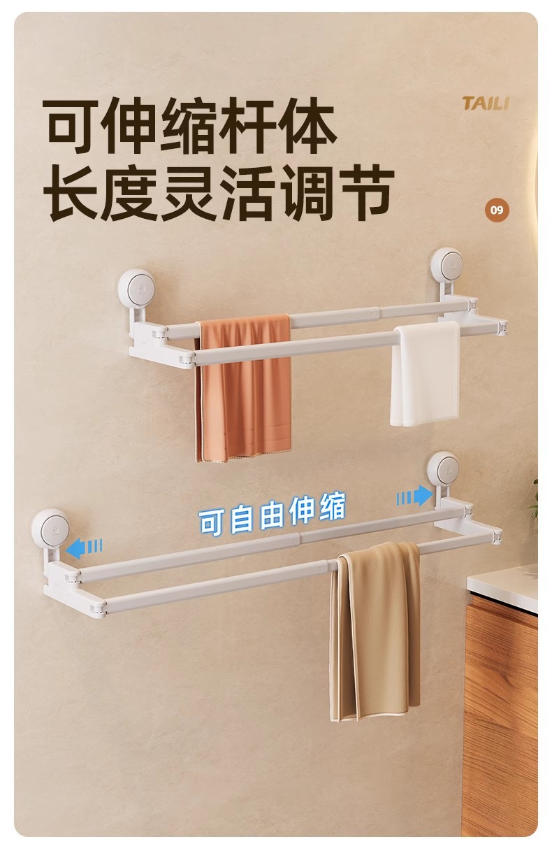 太力新款阳台吸盘伸缩杆浴室浴帘杆可伸缩调节挂衣杆免打孔晾衣架