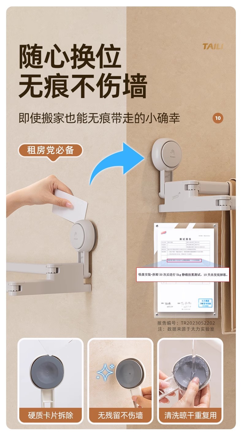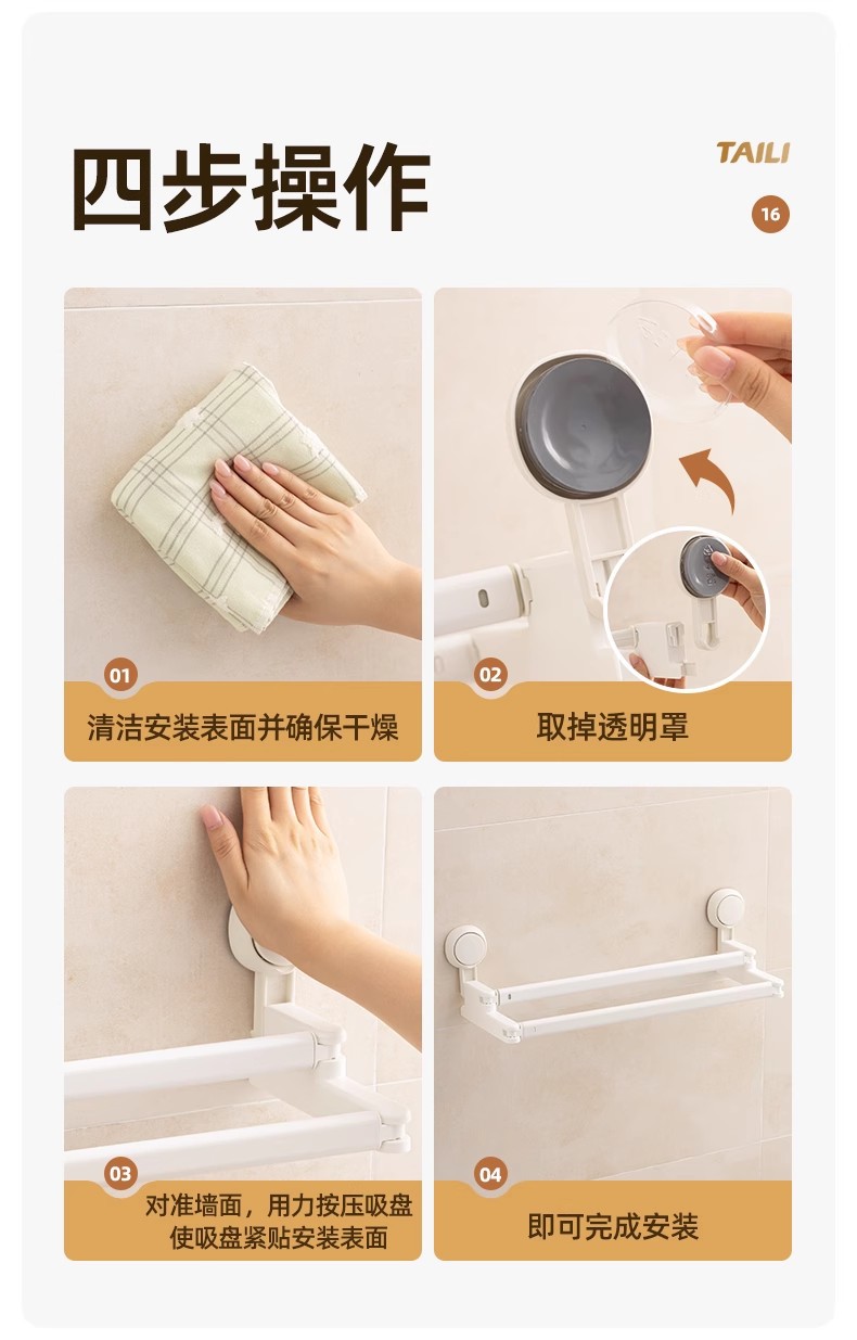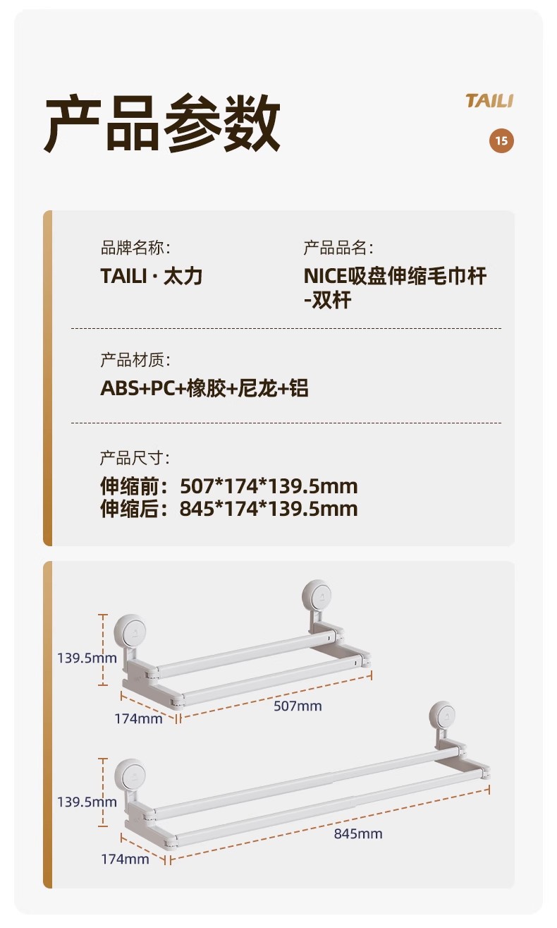 太力新款阳台吸盘伸缩杆浴室浴帘杆可伸缩调节挂衣杆免打孔晾衣架