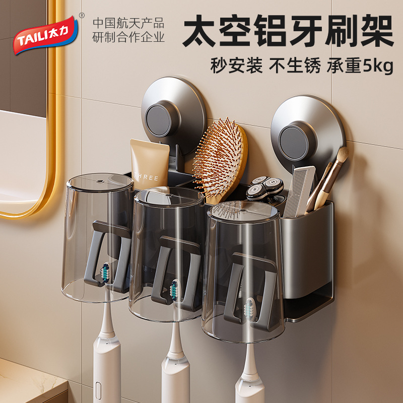 太力穴なし歯ブラシホルダートイレ多機能うがいカップ収納壁掛け式歯ブラシ収納棚
