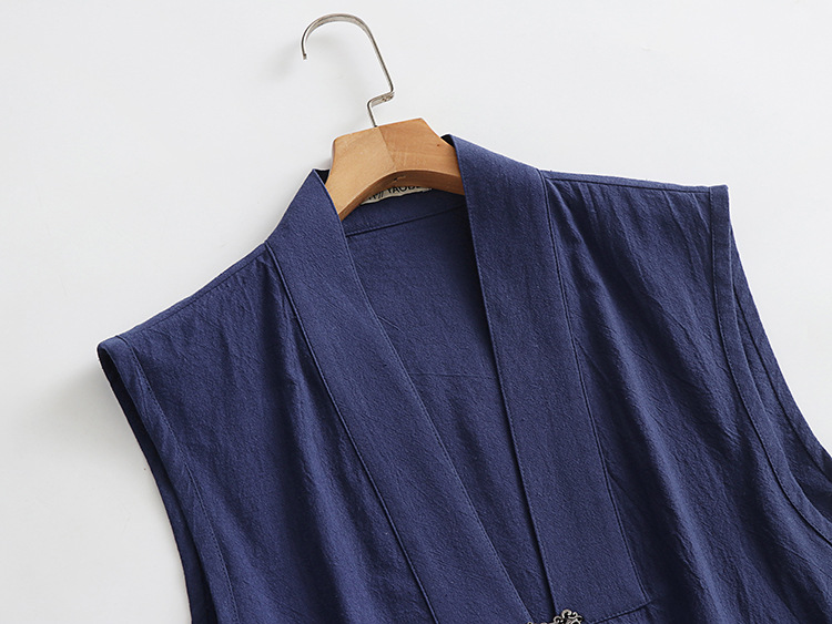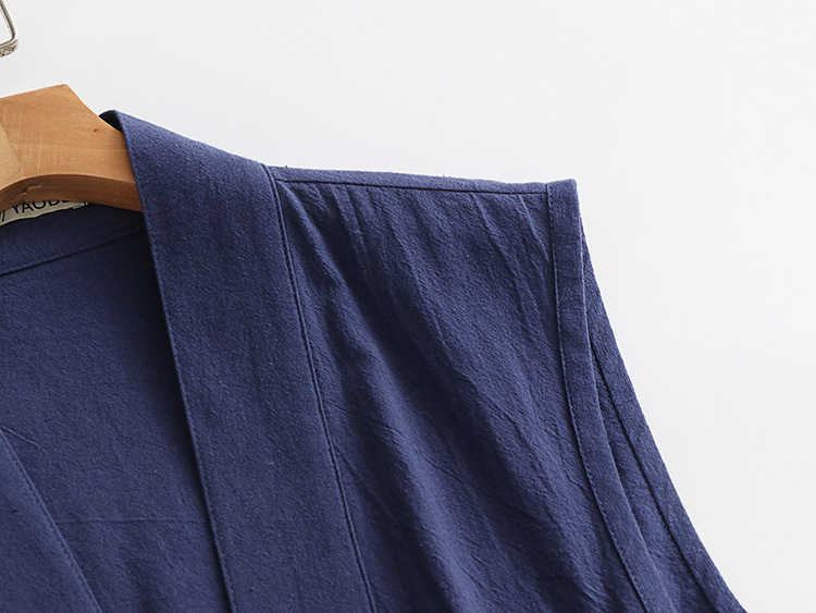 リネン Tシャツメンズ半袖夏ルーズメンズ中国風綿とリネン半袖トレンディな中国風メンズボタンダウントップ