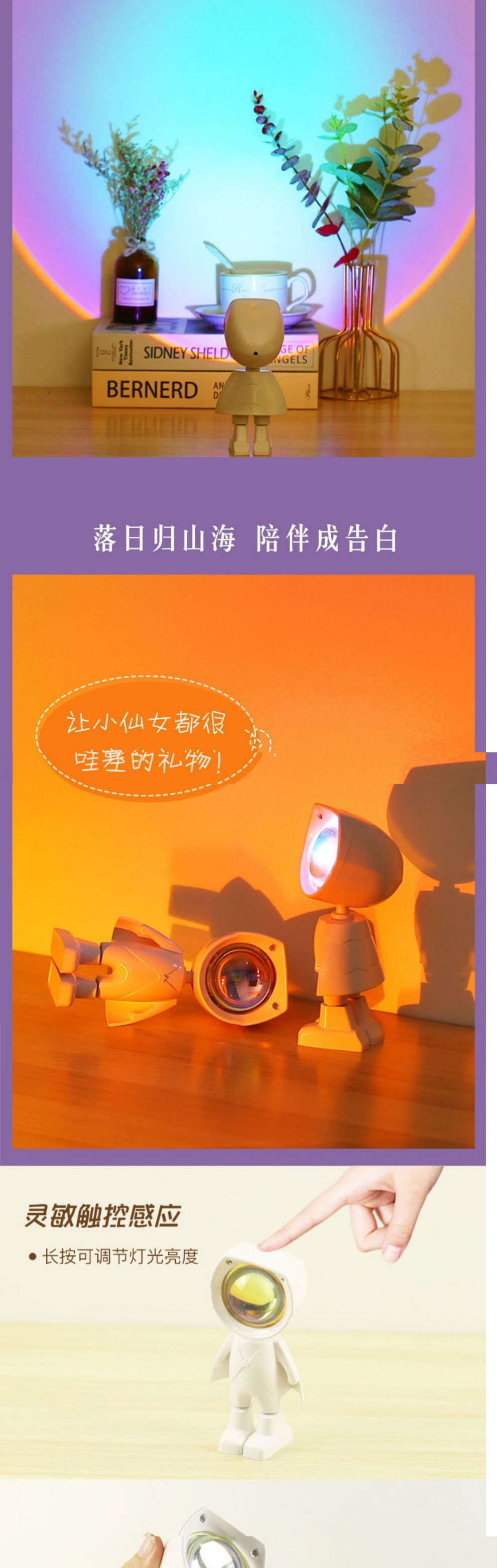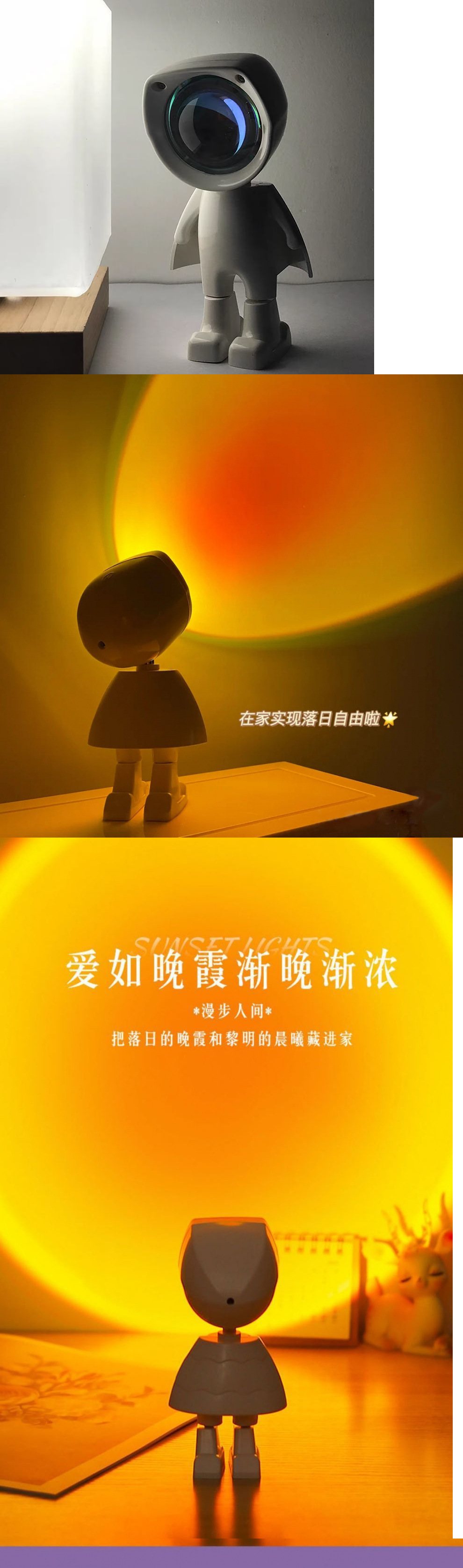 宇宙飛行士サンセットランプ雰囲気サンセットランプ写真背景投影ナイトライト寝室デスクトップテーブルランプ
