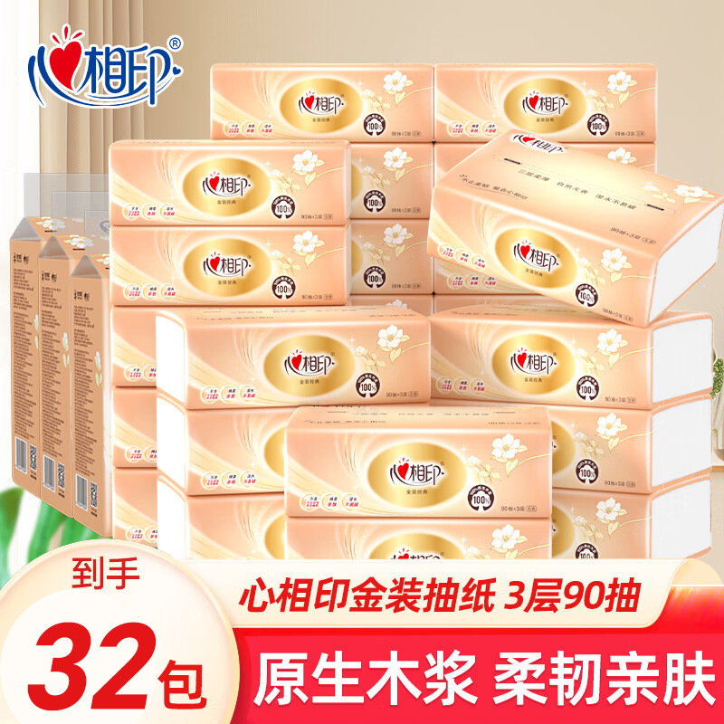 【24パック】心香印ティッシュペーパー クラシック90枚入り24パック ゴールドパックティッシュペーパー 学生向けお得なパック 原木パルプ製トイレットペーパー ナプキン
