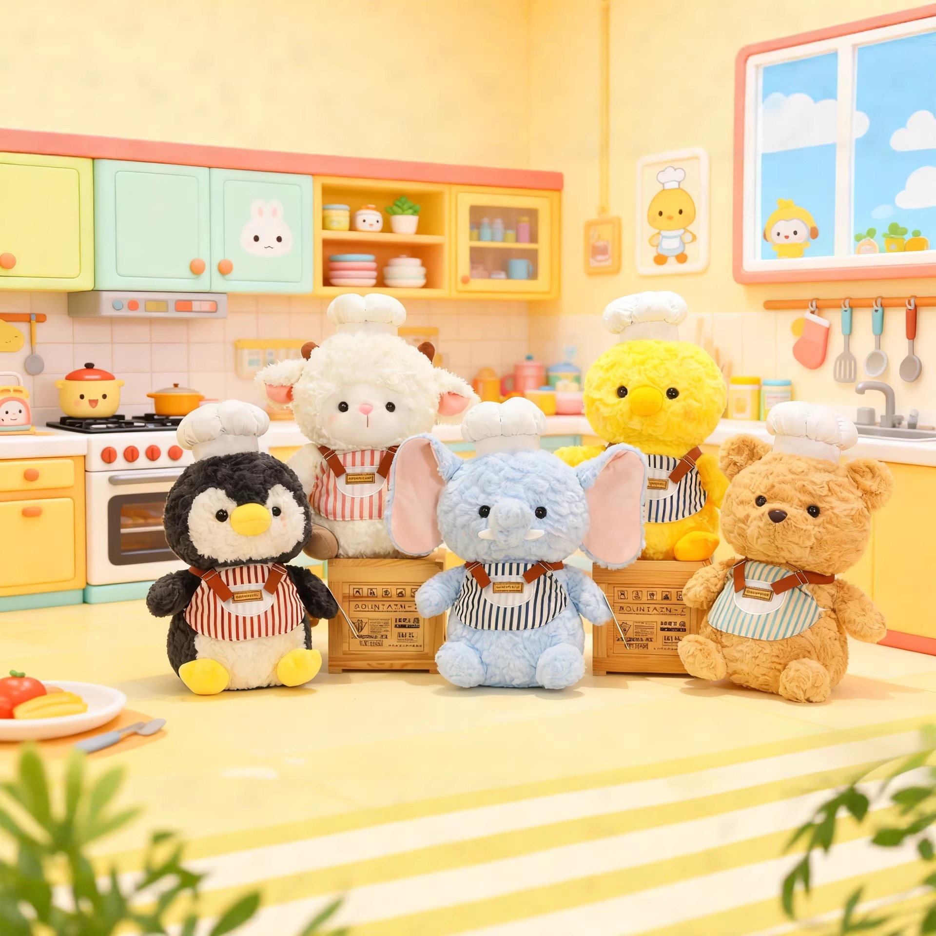 贝洋洋可爱新款香味厨师公仔企鹅小羊黄鸭公仔玩偶女生睡觉安抚娃