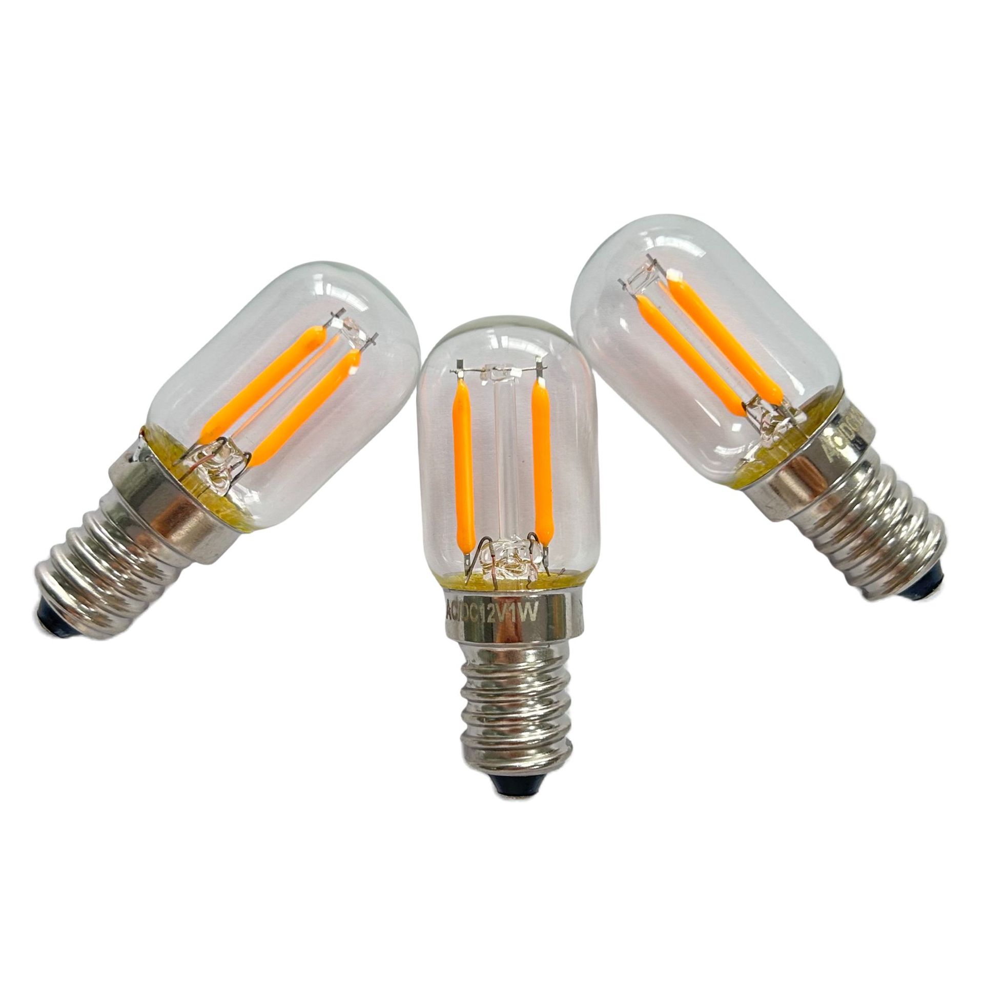 E14 T22X60mm LED フィラメントチューブ型電球 12V 1W 暖かい光冷蔵庫電球、塩ランプ交換用ランプ