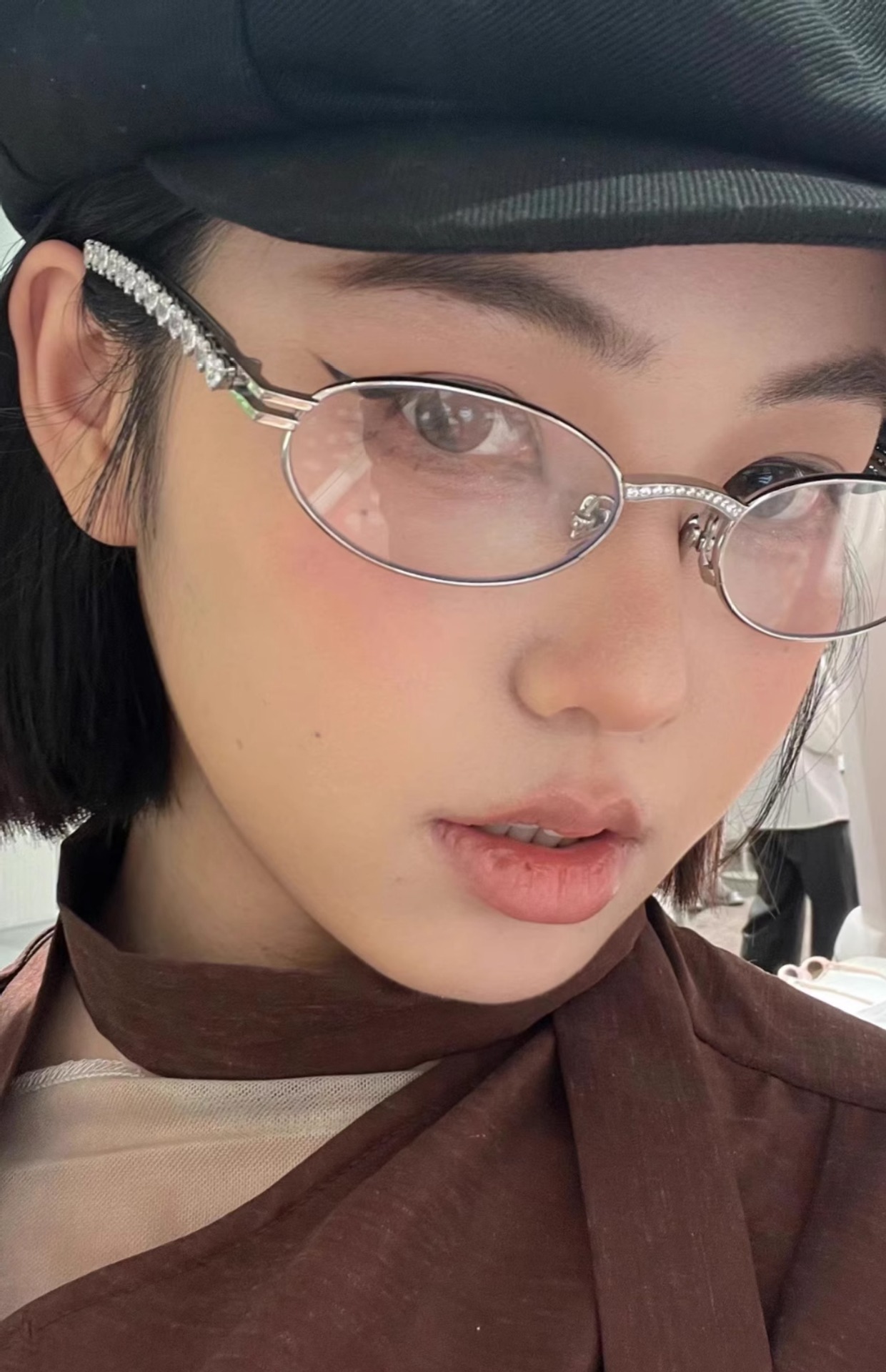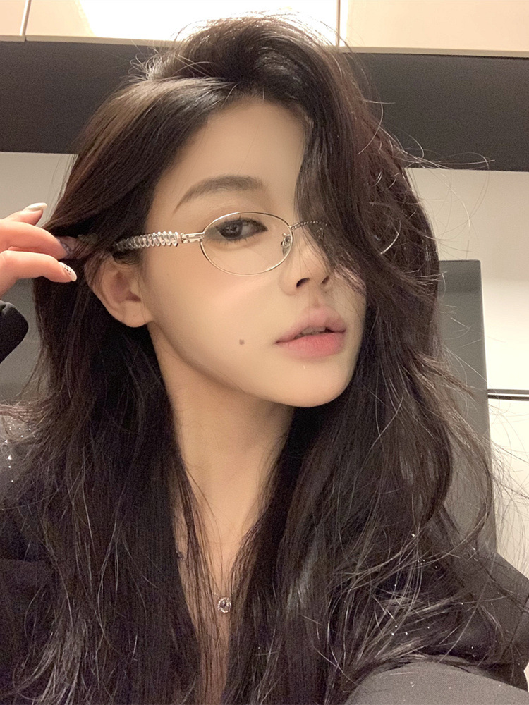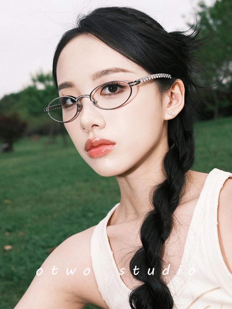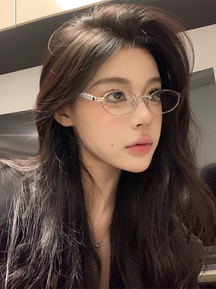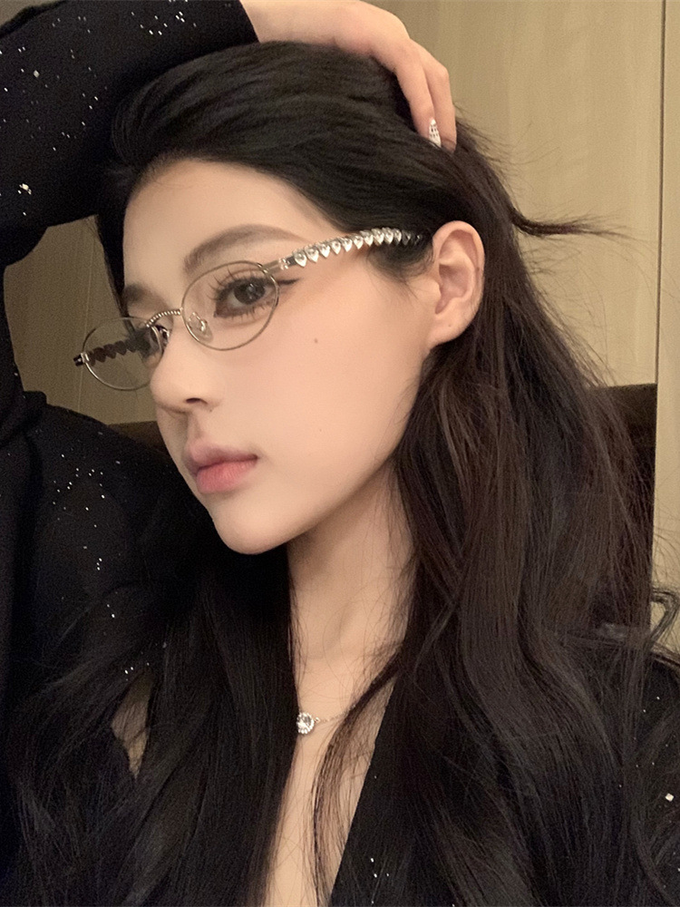 ジェニー オーバル ダイヤモンド メガネ レディース ハイエンド メタル ラブ ラインストーン フレーム 無地装飾近視フラット メガネ