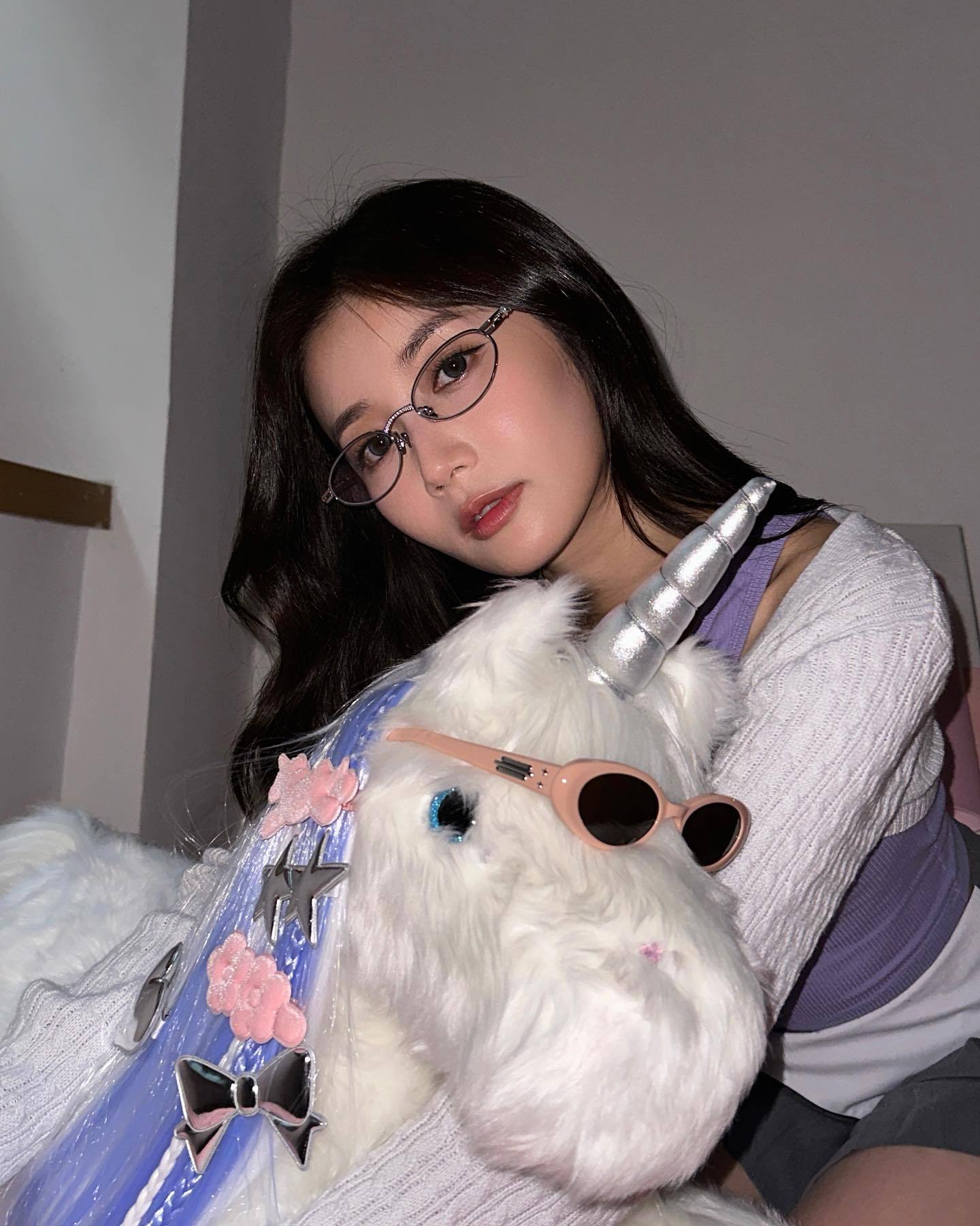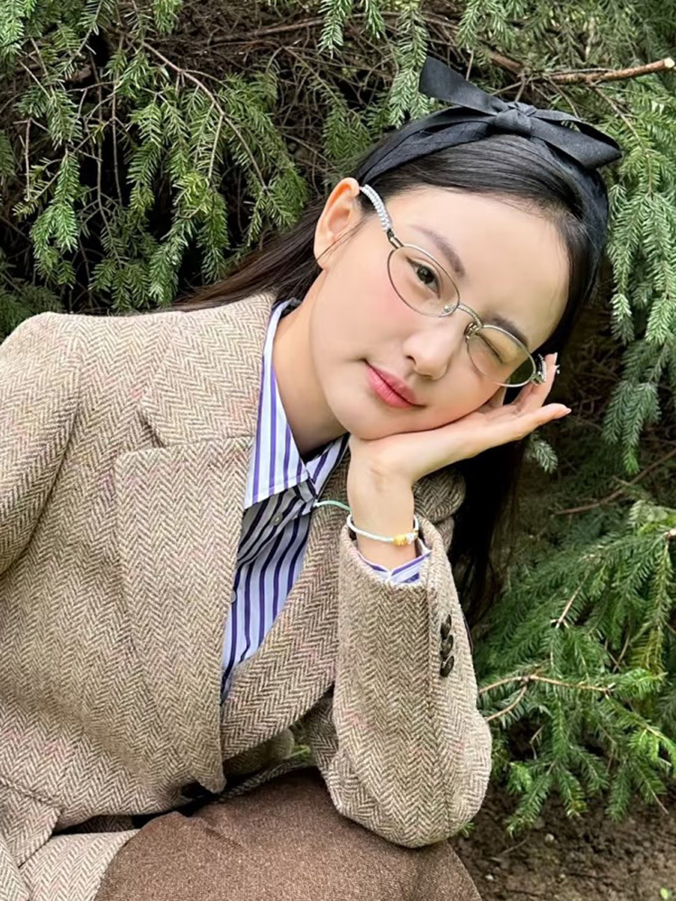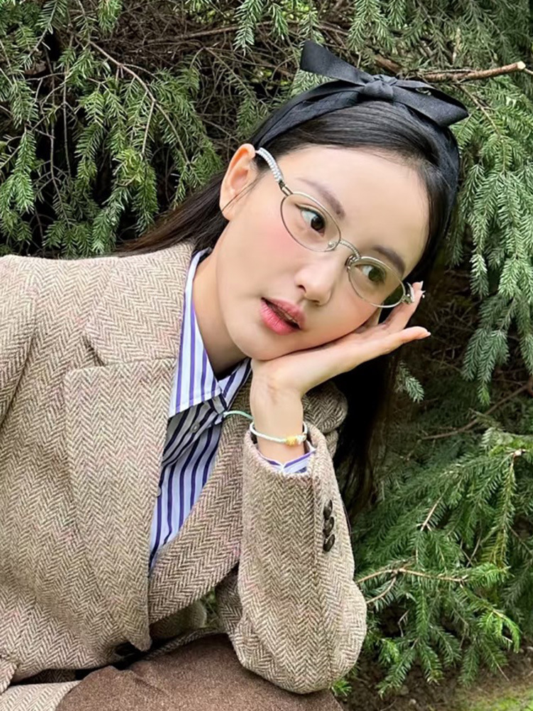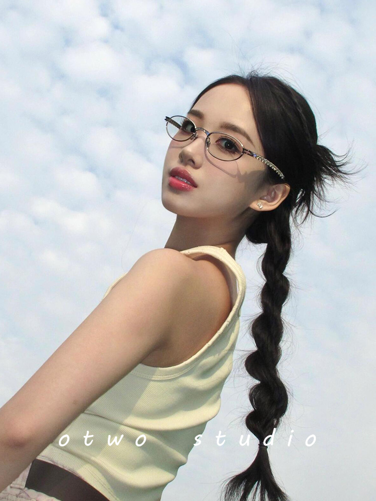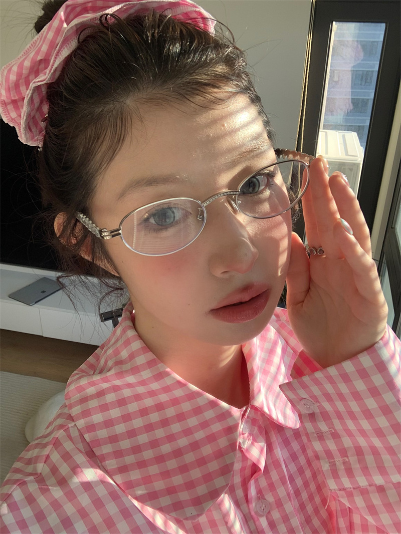 2025春の新型柳智敏と同じ枠なしメガネの女性の清冷高智感の縁なしのお姉さんは近視を配合することができます。