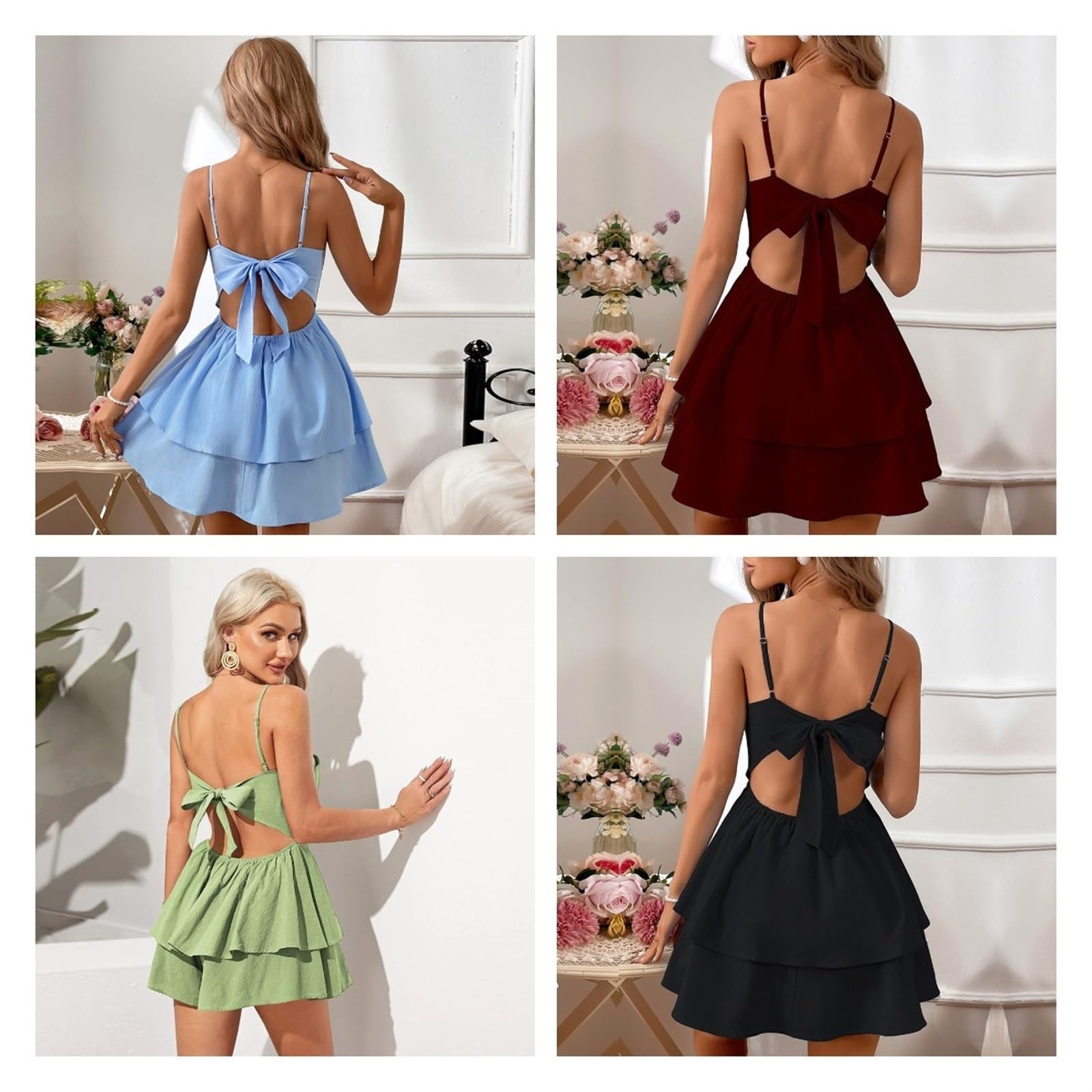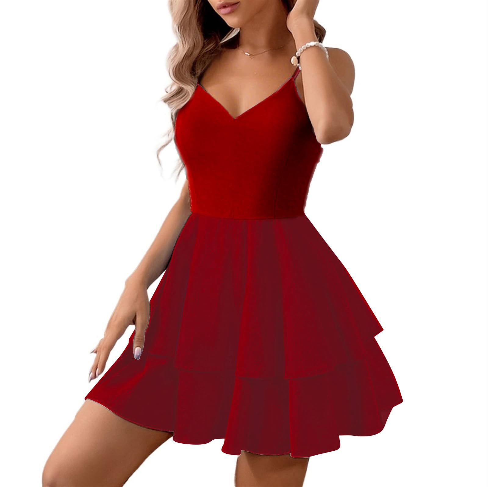 2024年アマゾン国境を越えた対外貿易人気のヨーロッパとアメリカンスタイルのケーキスカートバックレスリボンサスペンダーVネックドレス