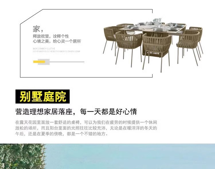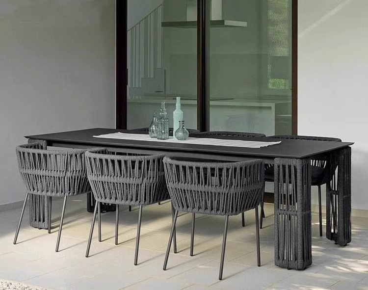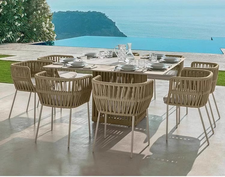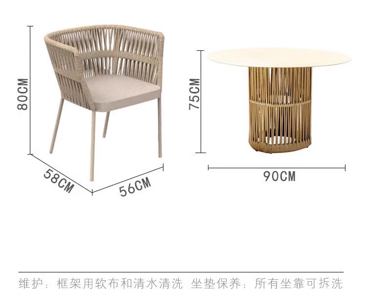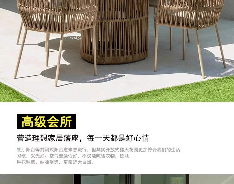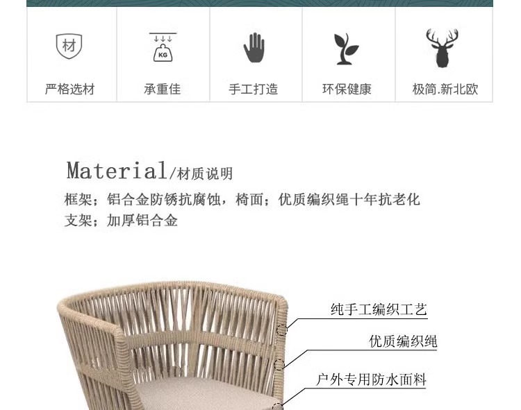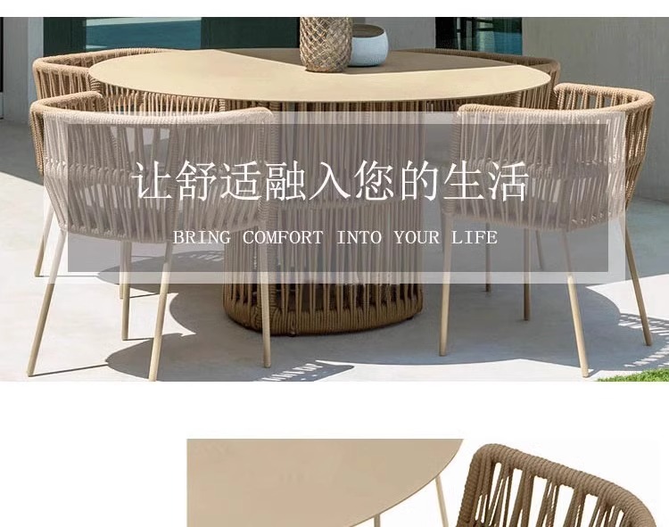 屋外レジャーテーブルと椅子ロープ編みガーデンバルコニー中庭ヴィラ屋外テラス防水日焼け止め北欧籐椅子家具
