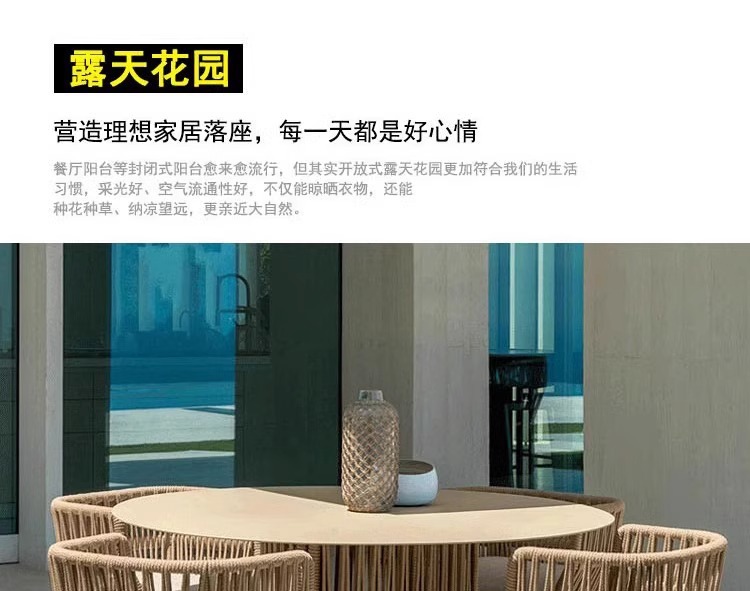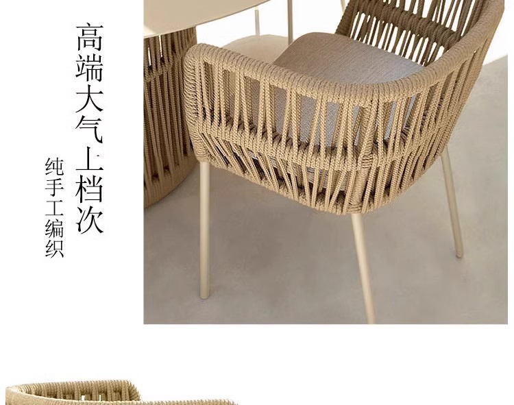 屋外レジャーテーブル椅子縄編みガーデンバルコニー庭別荘屋外露店防水日焼け止め北欧藤椅子家具