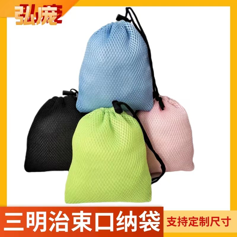 現物サンドイッチ網袋黒色引き紐包装袋メッシュポケットはロゴ網布収納袋に対応している