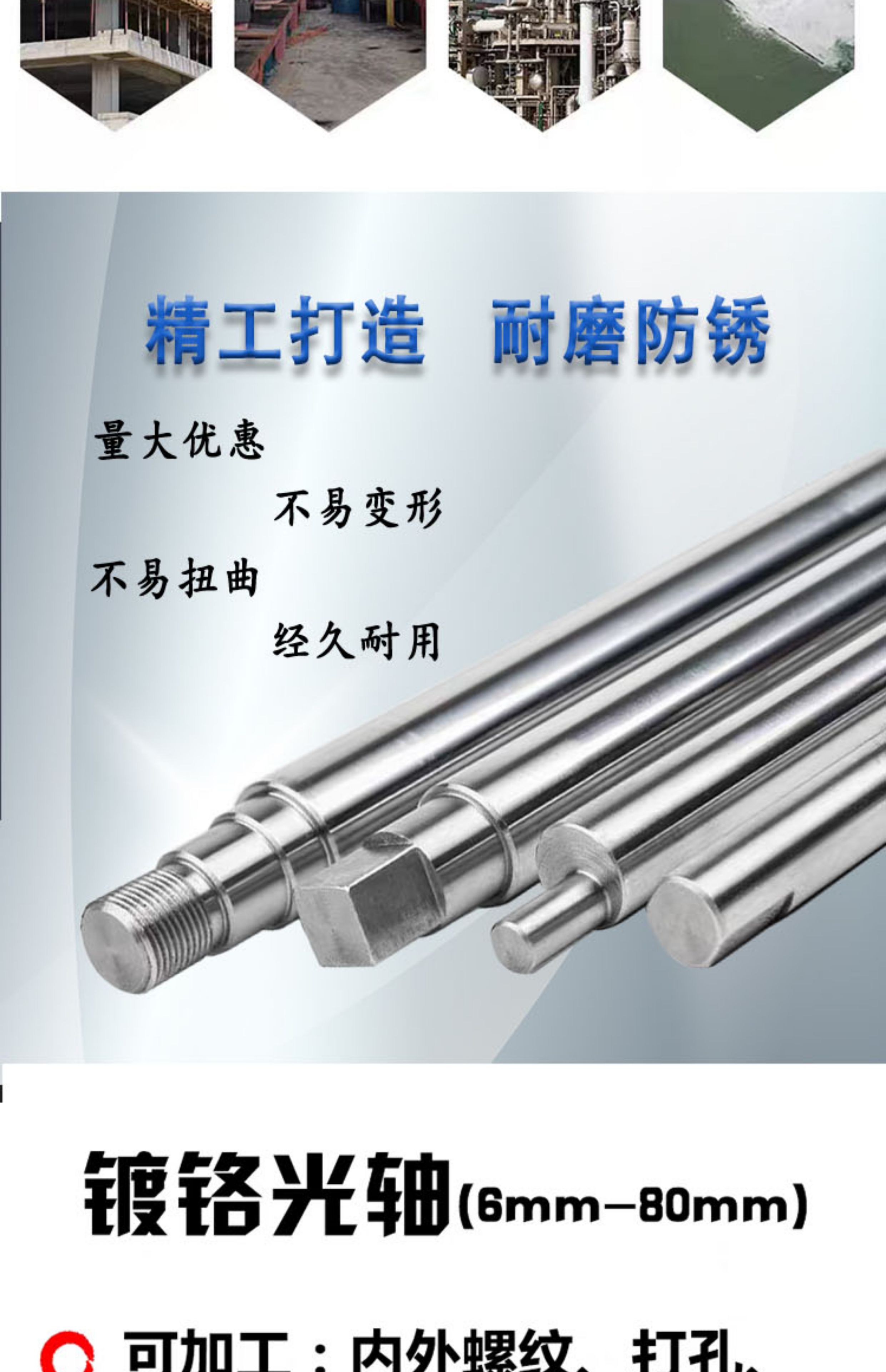 镀铬棒光轴diy配件45号钢圆棒导向轴支座液压杆支撑杆不锈钢定 制