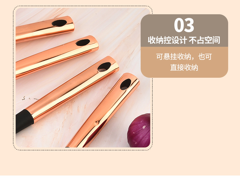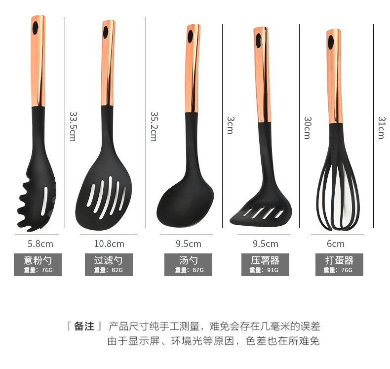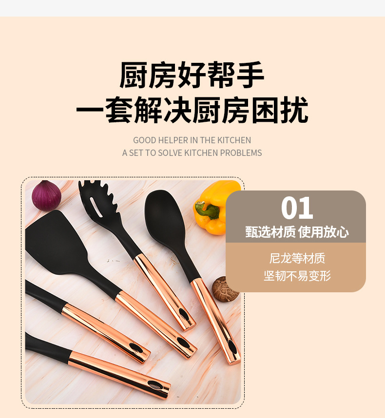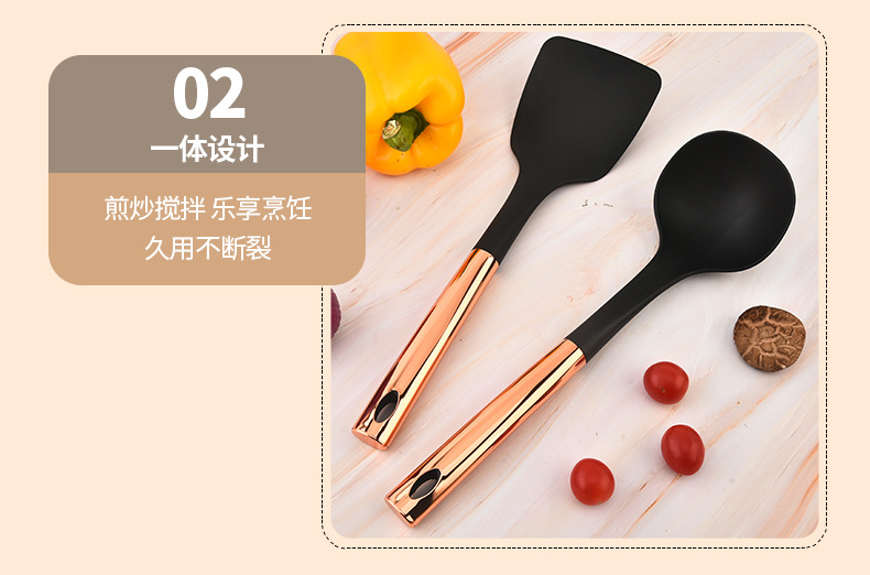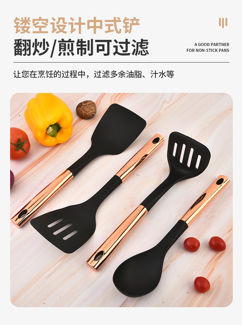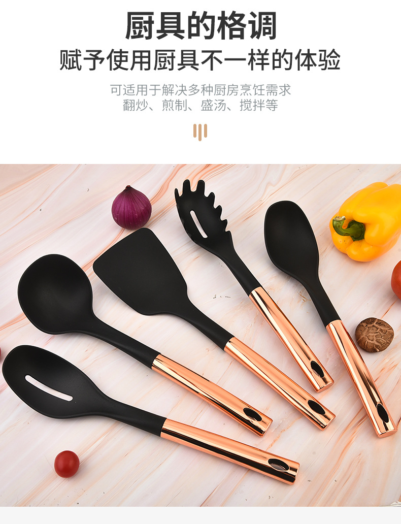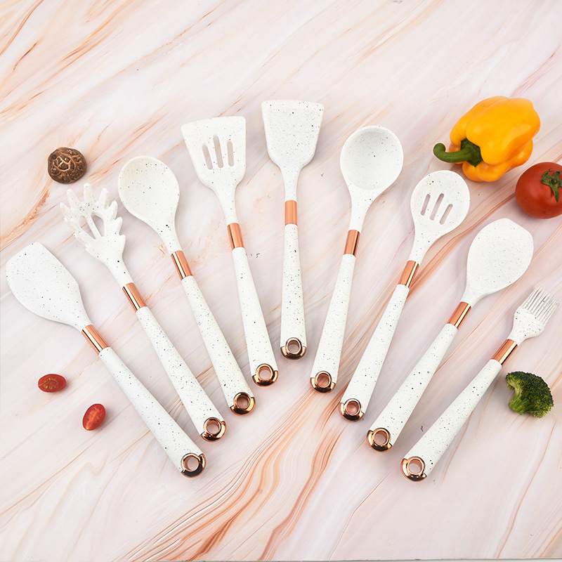 シリコン料理道具9点セットステンレスバラ金柄炒め物シャベルスプーンキッチン料理シャベルスプーンセット卸売り