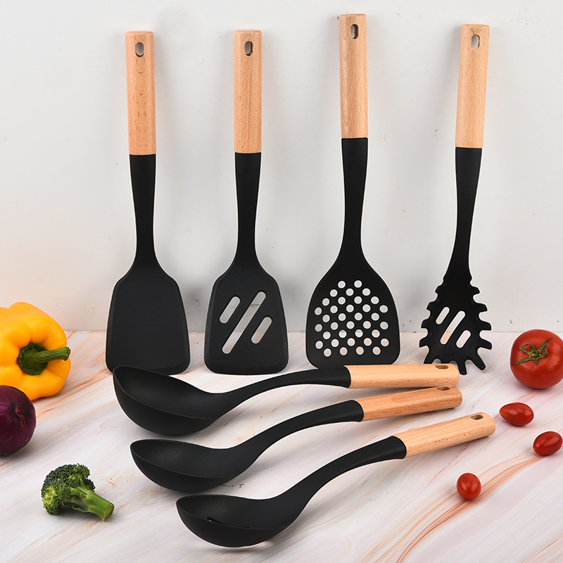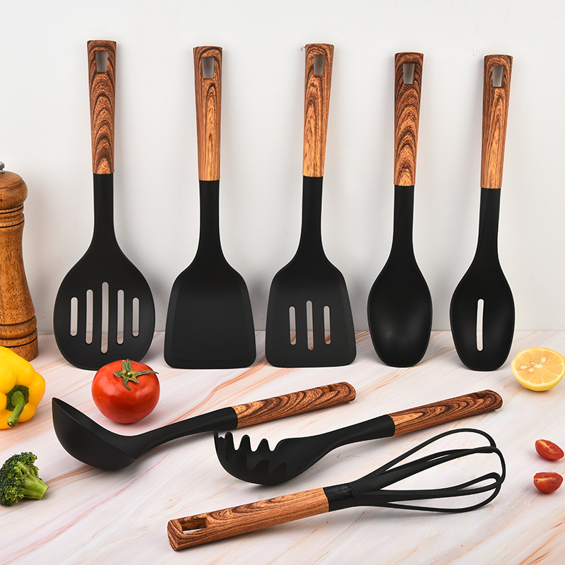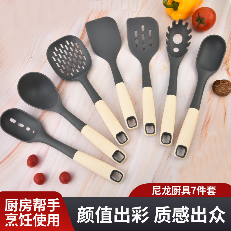 木柄ナイロン調理器具セット家庭用炒め鍋シャベルスプーン漏れスプーンキッチン調理スプーンシャベル7点セット卸売り