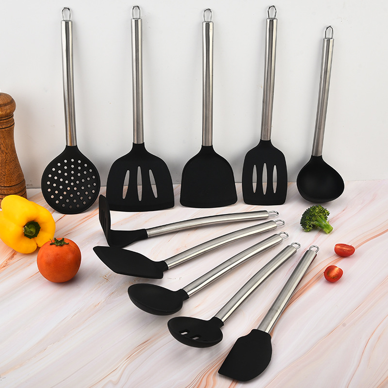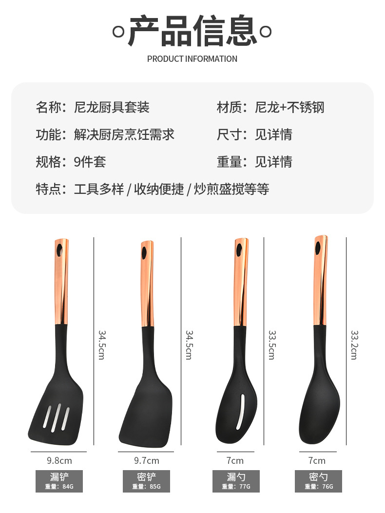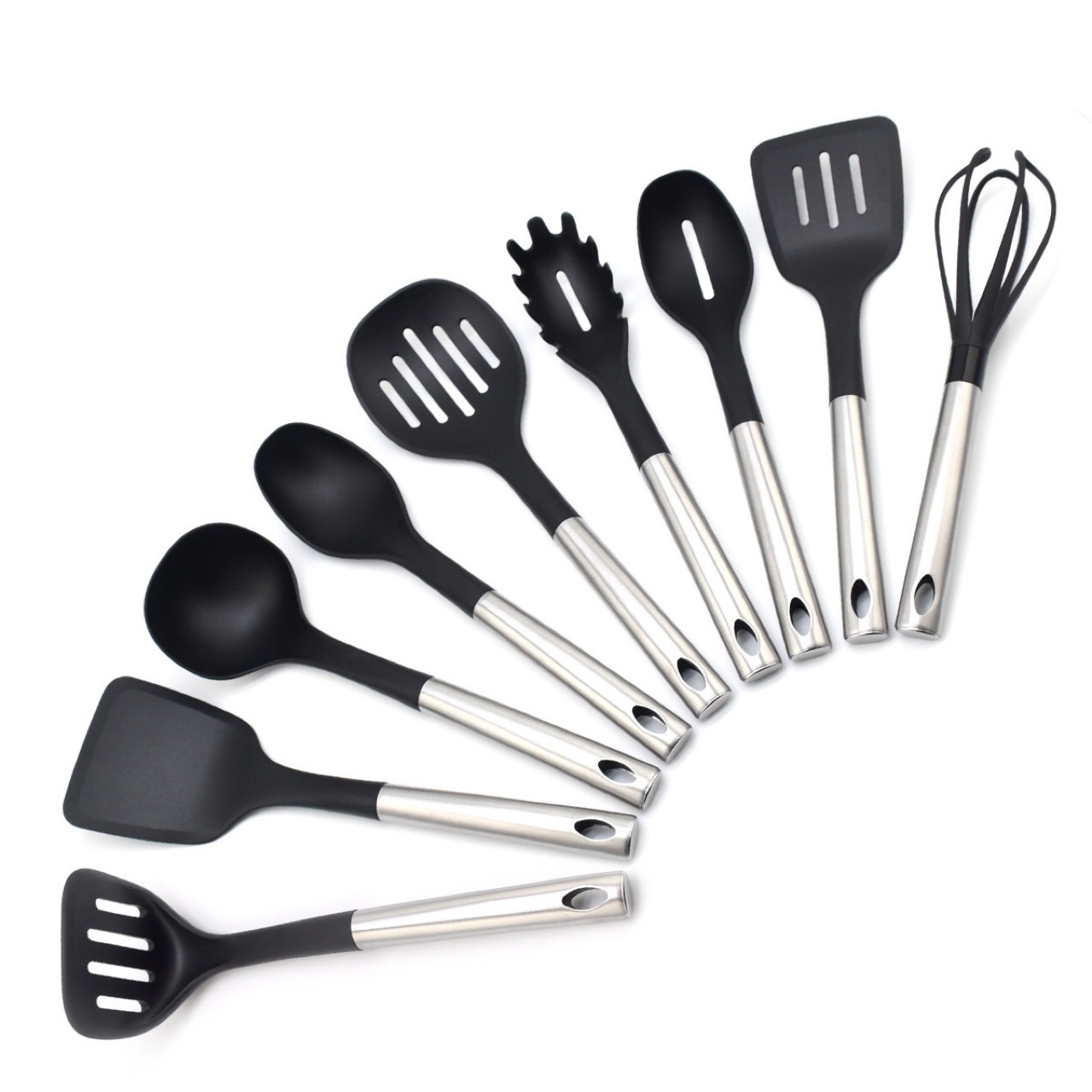 メーカー卸売ステンレス鋼ハンドルナイロンキッチン用品セット家庭用調理スパチュラスプーンスパチュラキッチンキッチン用品9点セット