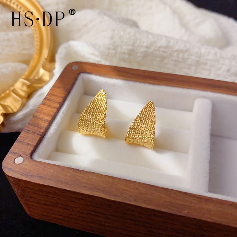 法式时尚复古金属纹理三角金属耳钉女气质简约独特设计感耳环批发
