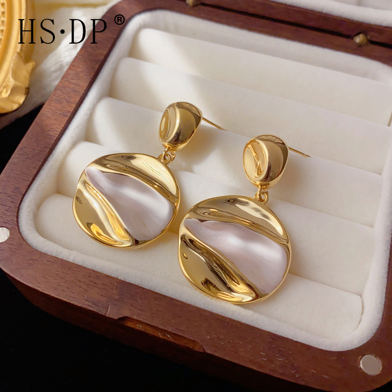 亚马逊跨境个性复古18K真金电镀金属薄涂圆形耳坠轻奢冷淡风耳环