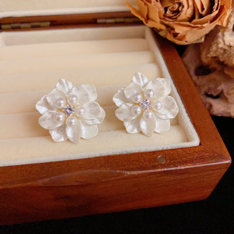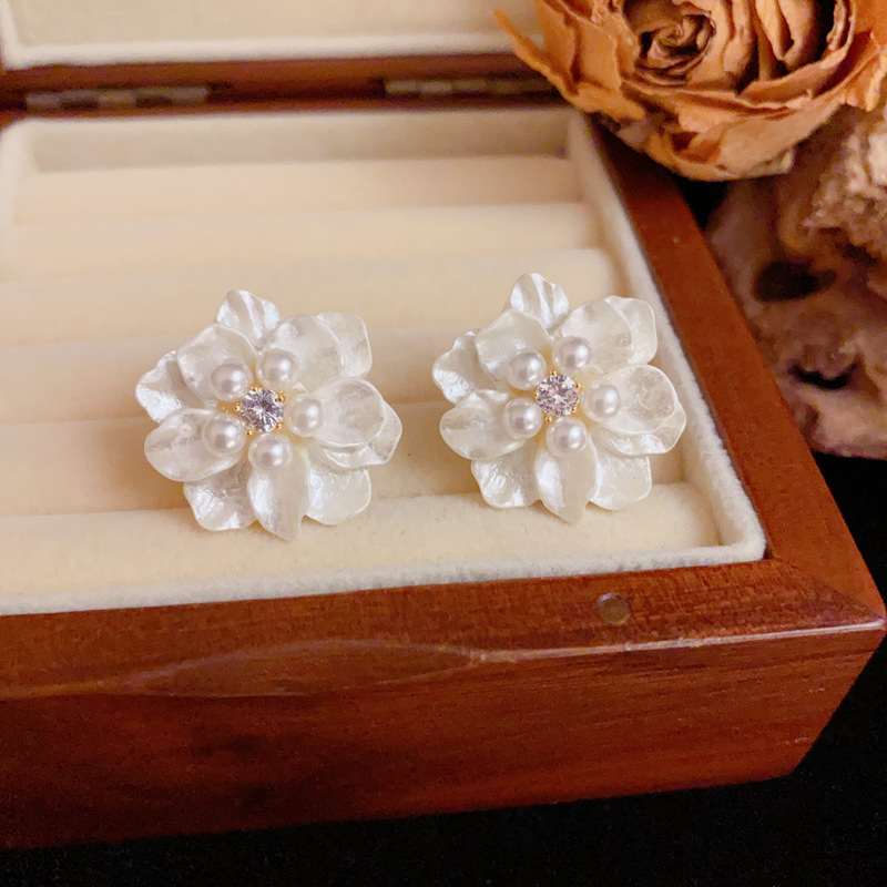 s925 シルバー針ライト高級甘い真珠椿イヤリング気質ファッション小さな新鮮な優しい多用途イヤリング卸売