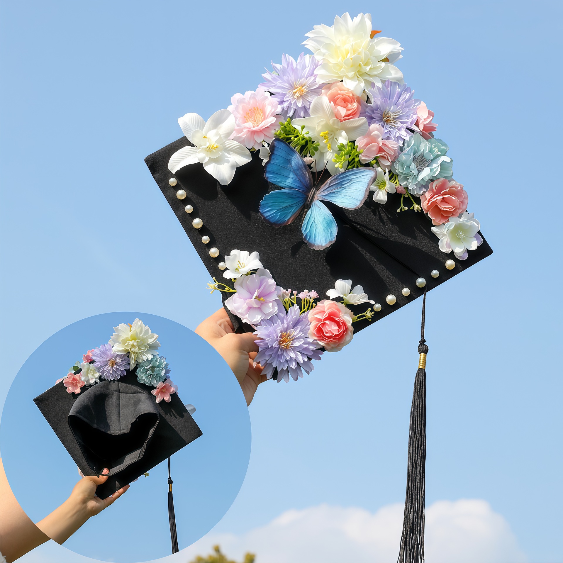 DIY 学士の帽子完成品、造花、大学生の卒業写真、大学院の帽子、ガールフレンドと親友へのギフト