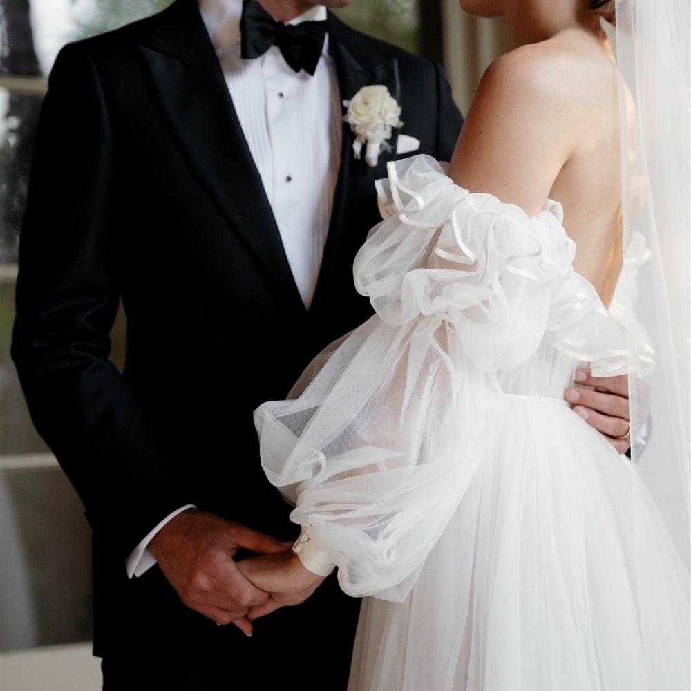 新しいシンプルな透明な白メッシュスリーブフリル弾性ウェディングドレスウェディングドレススーパーフェアリーハンドスリーブドレスアクセサリー