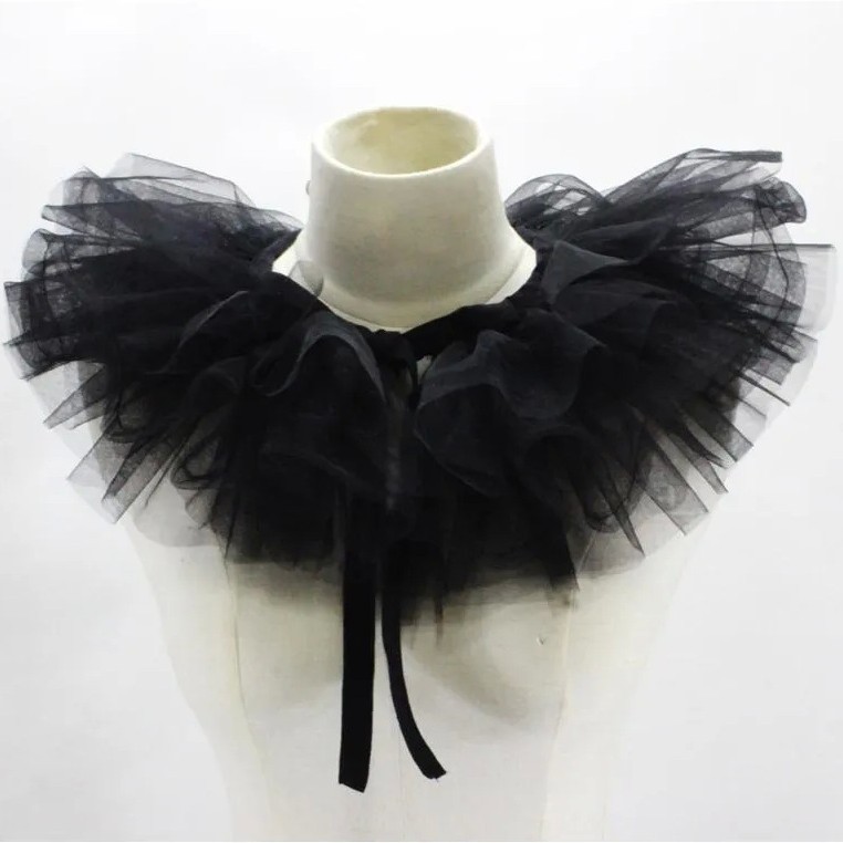 ハロウィーン黒ハードネット偽襟演出服レトロ宮廷無骨多層ネット糸装飾襟蓬蓬襟