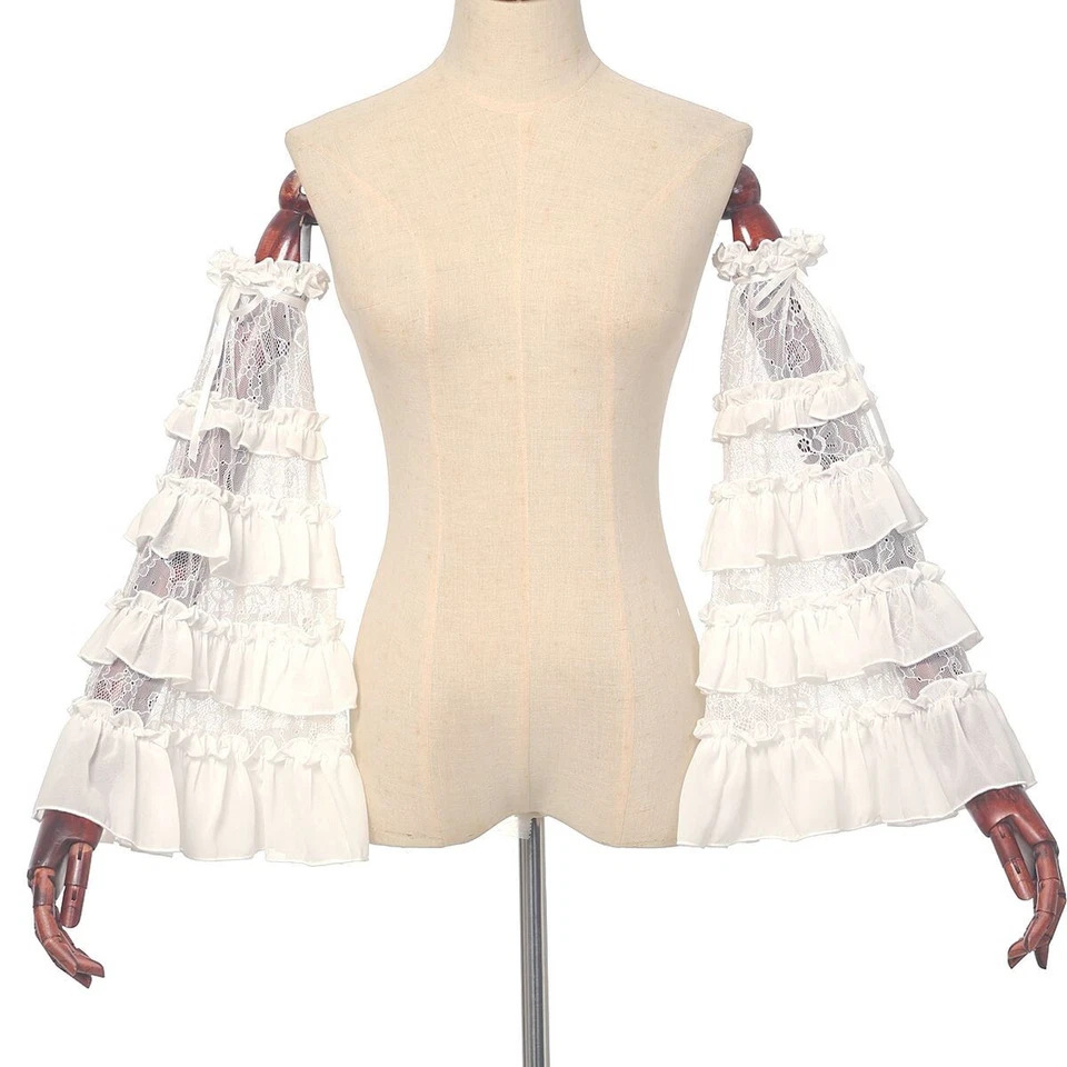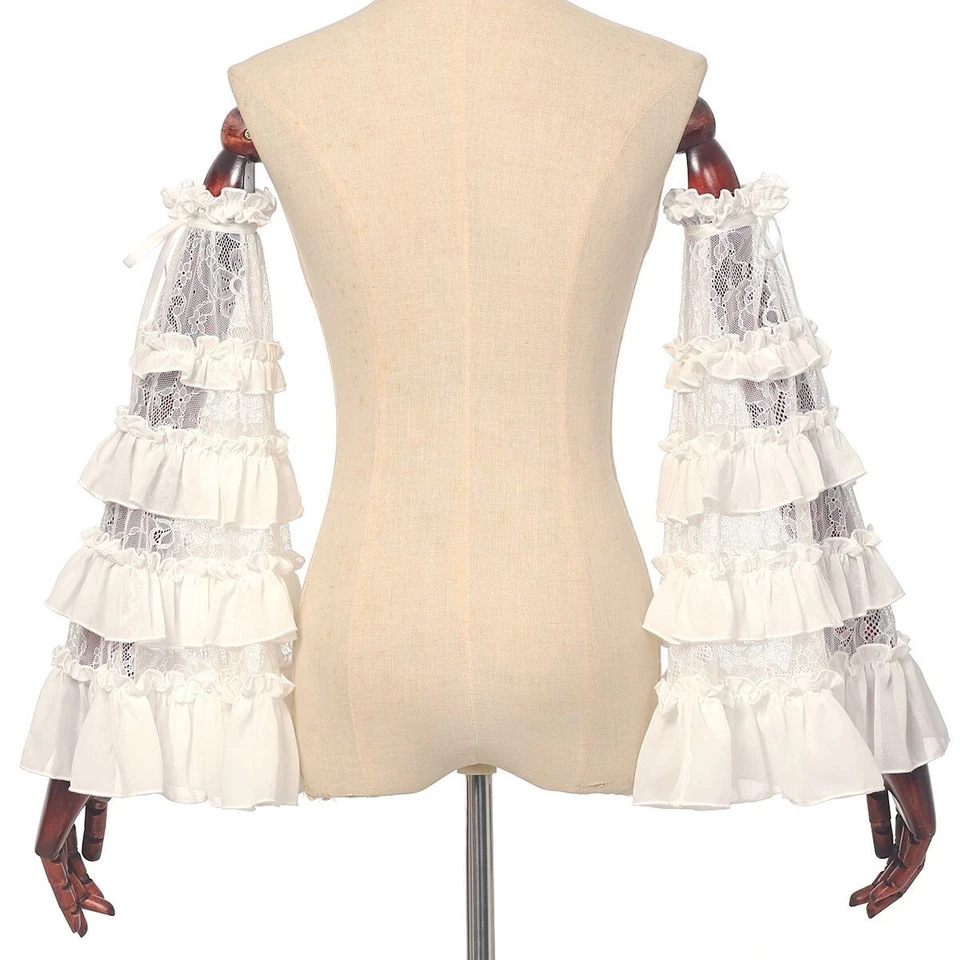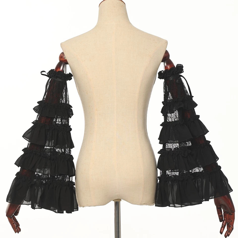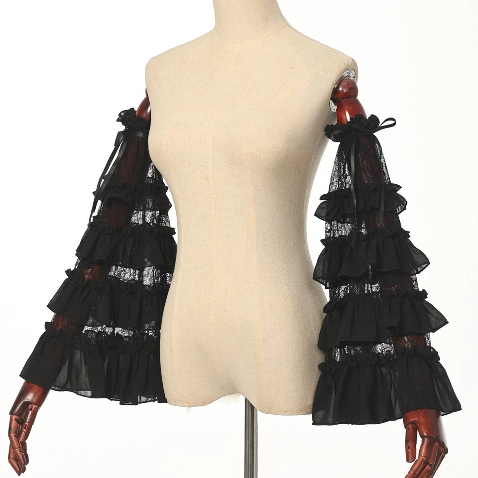 ゴシック式の薄いタイプの単層のシフォンの袖のカバーのレースの辺の通気性の白い黒色のロリータはスピーカーの袖の服を組み合わせます。