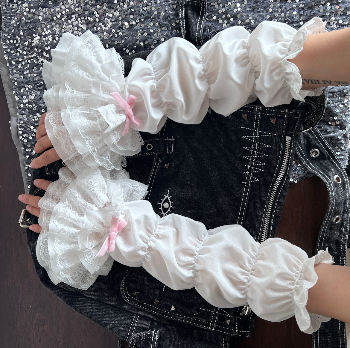 2025新款洛丽塔礼服袖套白色可爱肩袖舞会旅游拍照服蕾丝花边袖子