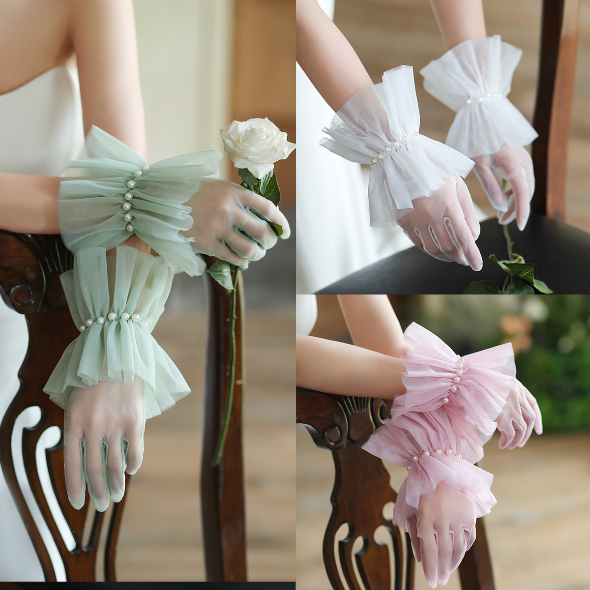 レディースウエディングドレスメッシュ袖カバー腕隠しロング透明チュール手袋レトロ手袋ドレス手袋