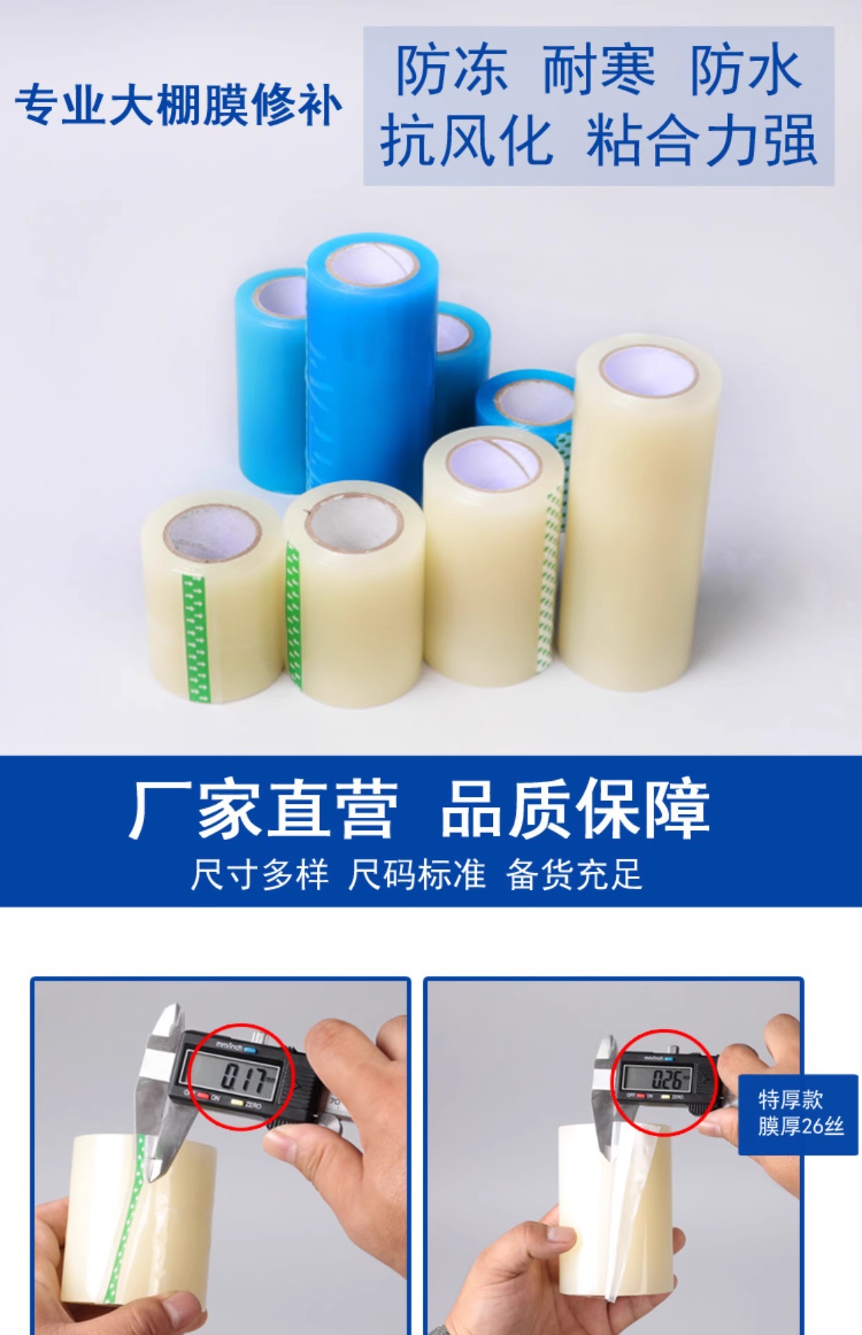 スポット 10m 野菜温室フィルム修理透明テーププラスチックフィルム PE 修理テープ非滴下フィルムテープ