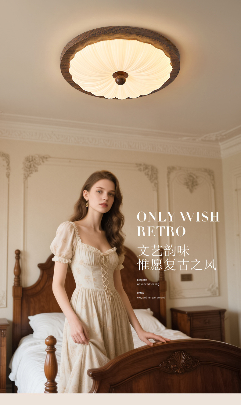 中世スタイルの寝室のシーリングランプクルミ色レトロなわびわびスタイルのハイエンドクルミ色の書斎の目の保護シーリングランプ