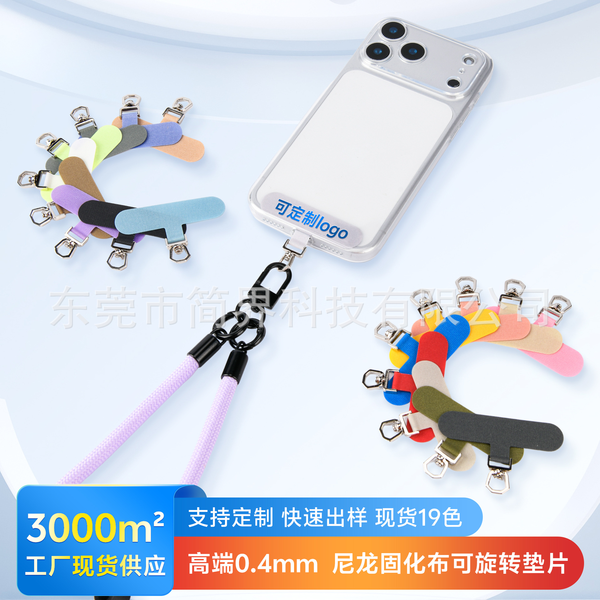 手机垫片360°可旋转尼龙0.4mm固化布夹片防丢手机挂绳垫片跨境