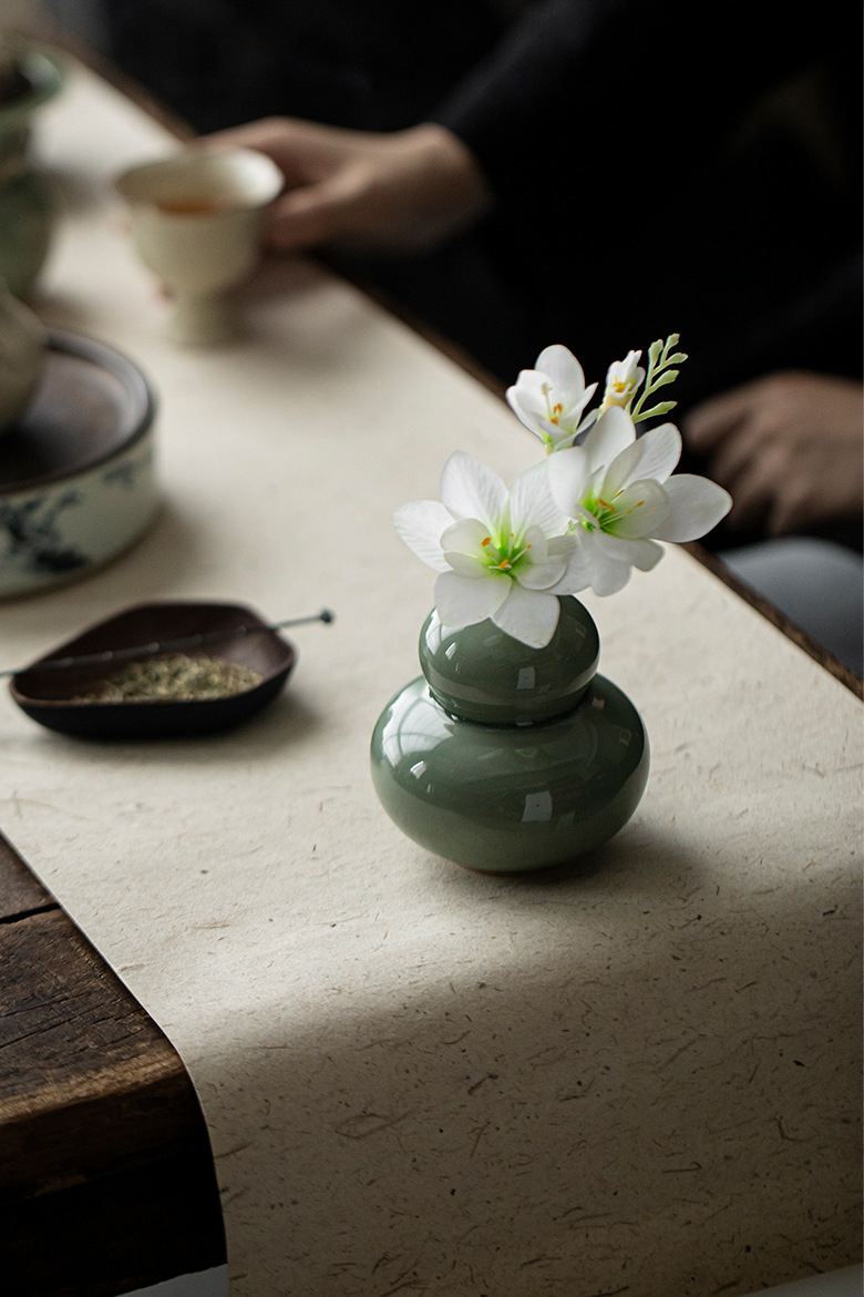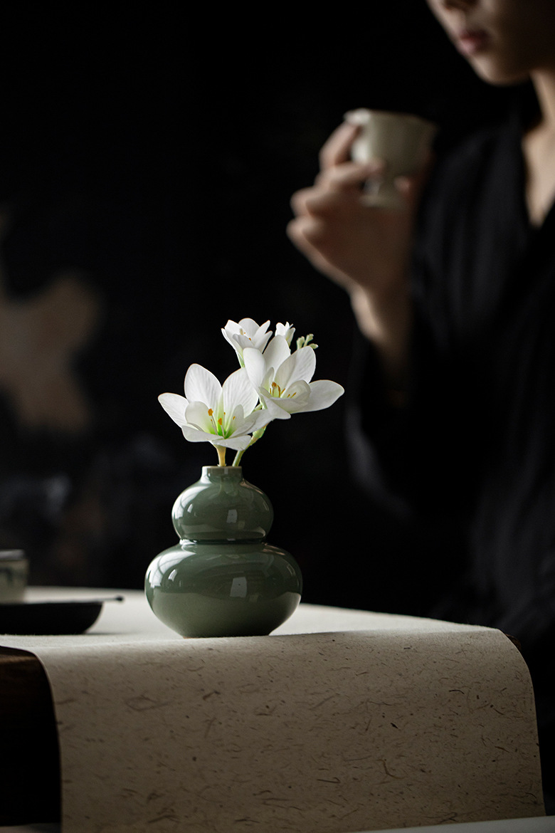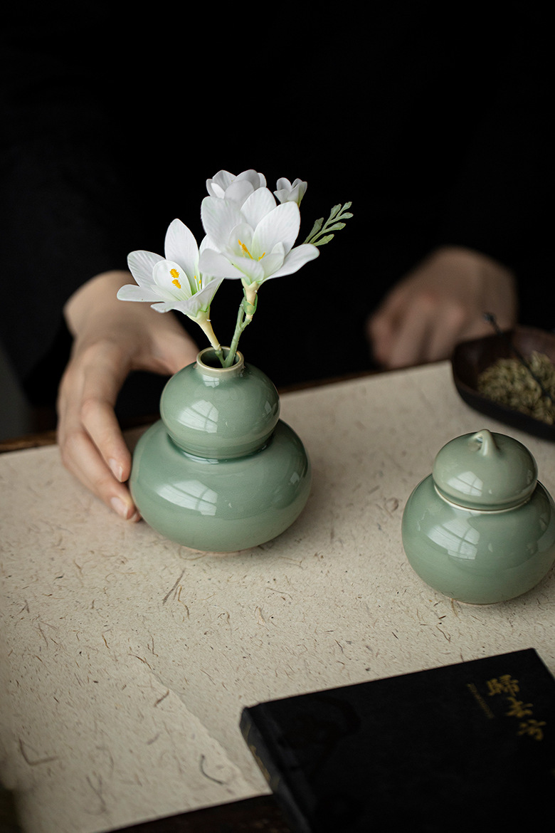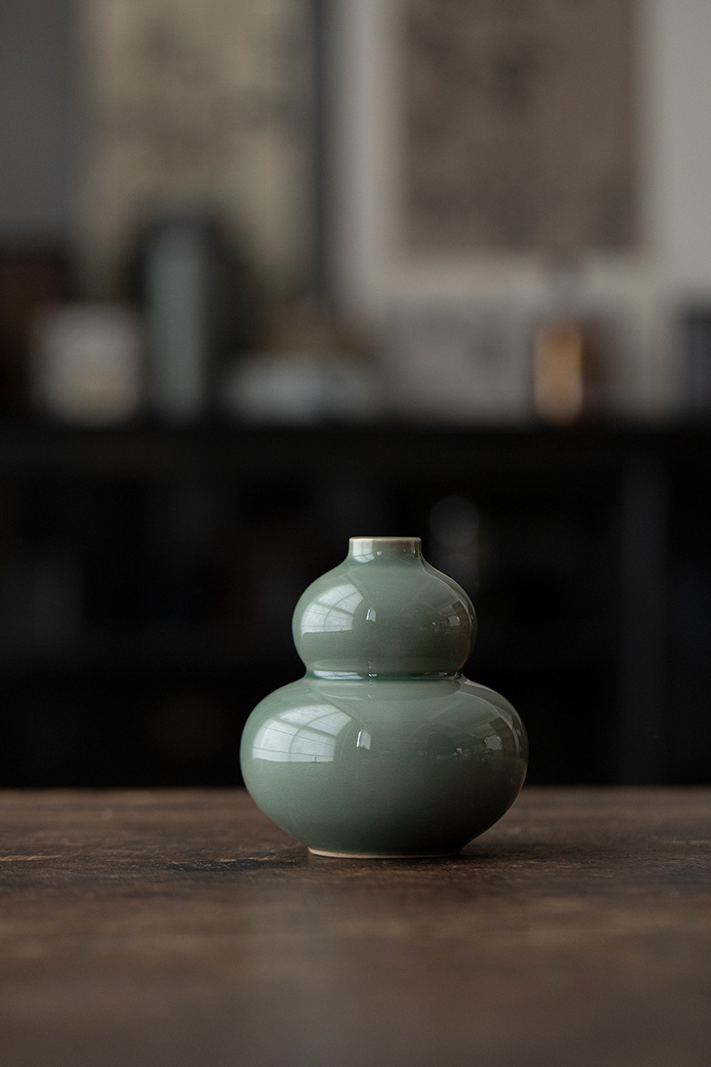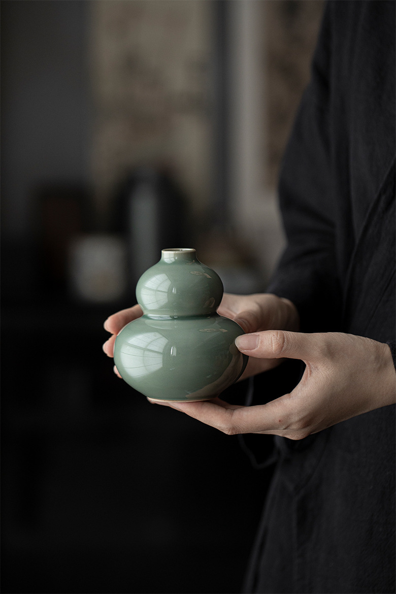 岳窯青磁ひょうたん花瓶飾り,月黄 - ひょうたん型フラワーベース置物