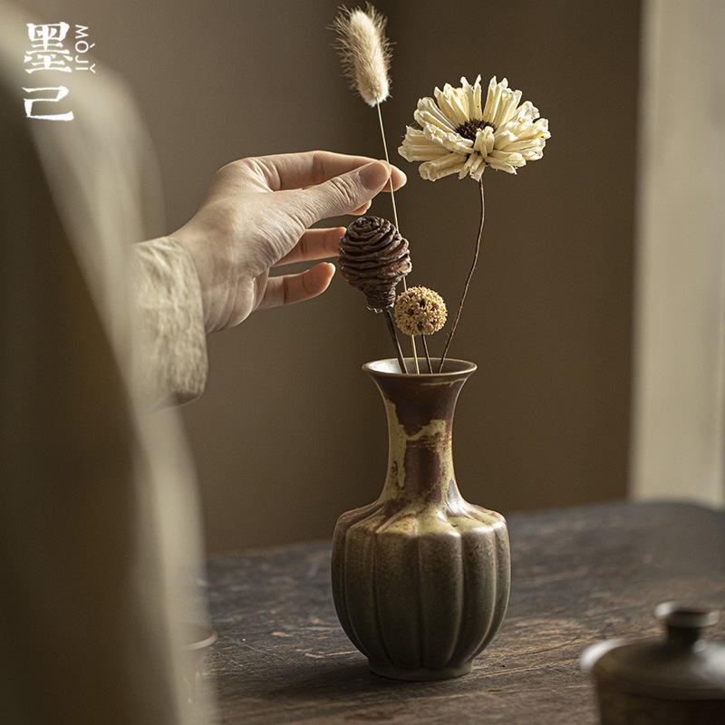 墨己備前焼日本式花芸瓶筋紋器陶泥模造古花瓶茶室置物陶磁器瓶