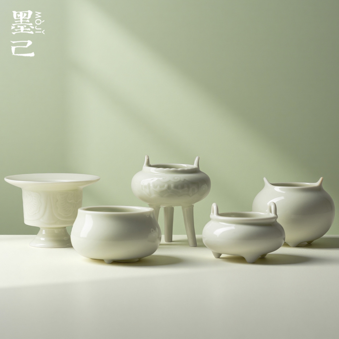Moji 越窯青磁セラミック香炉家庭用屋内香アクセサリー香篆香三脚炉香炉