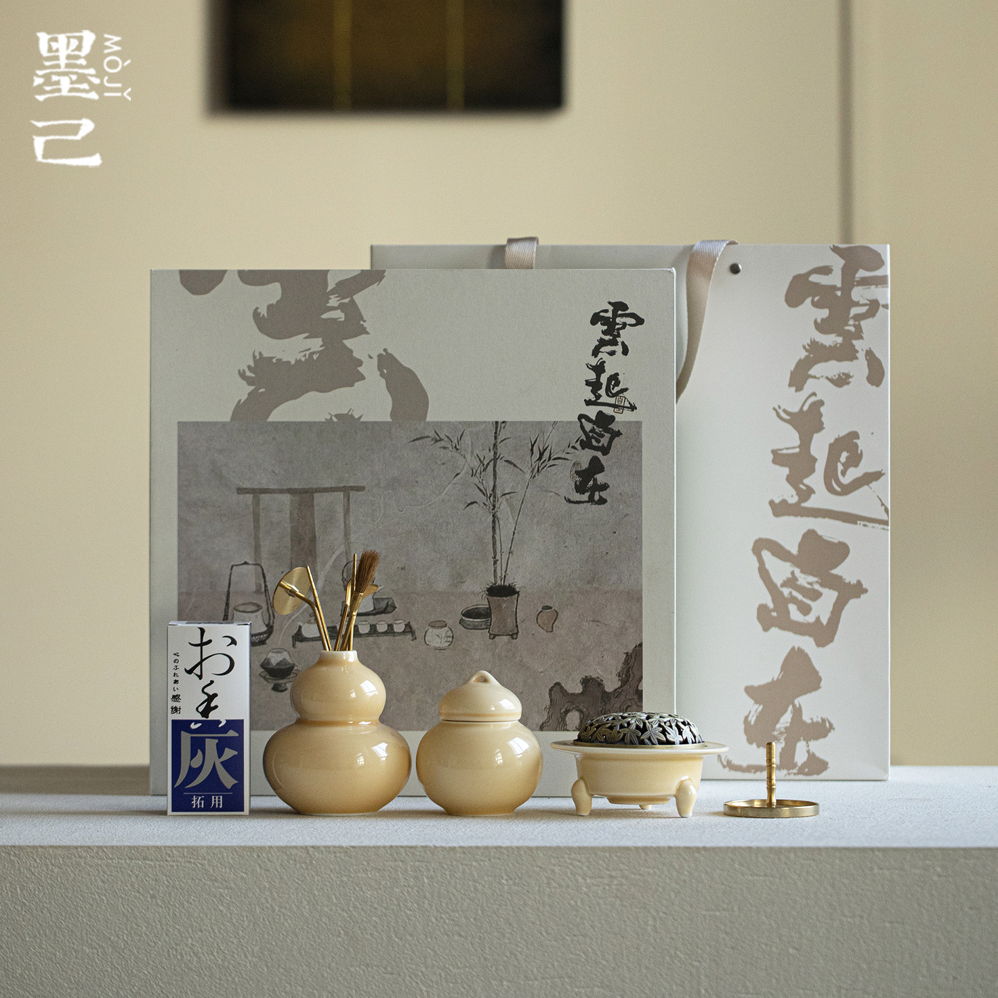 墨己月黄釉陶瓷香事套组家用打香篆香炉整套香道工具香薰用具套装