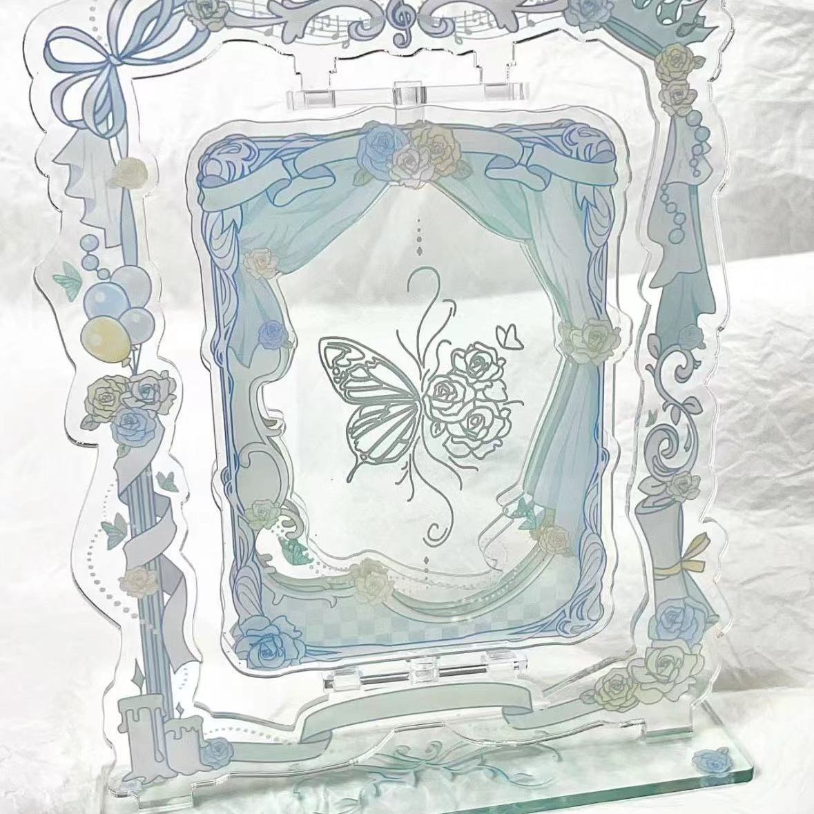 オリジナルの自作回転可能な蝶の周辺のアクリルの置物の小さいカードは3寸の写真を展示してカードを挿して札を立てます。