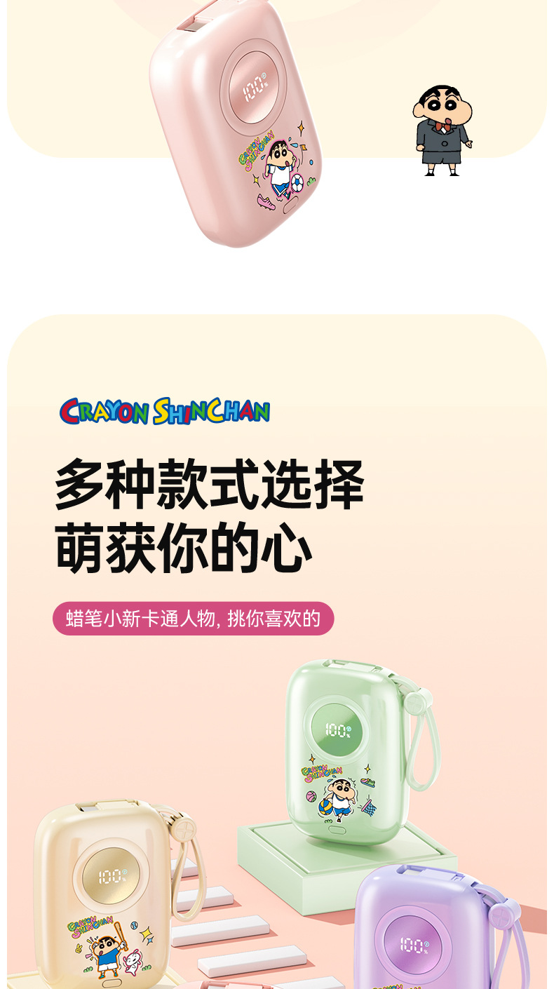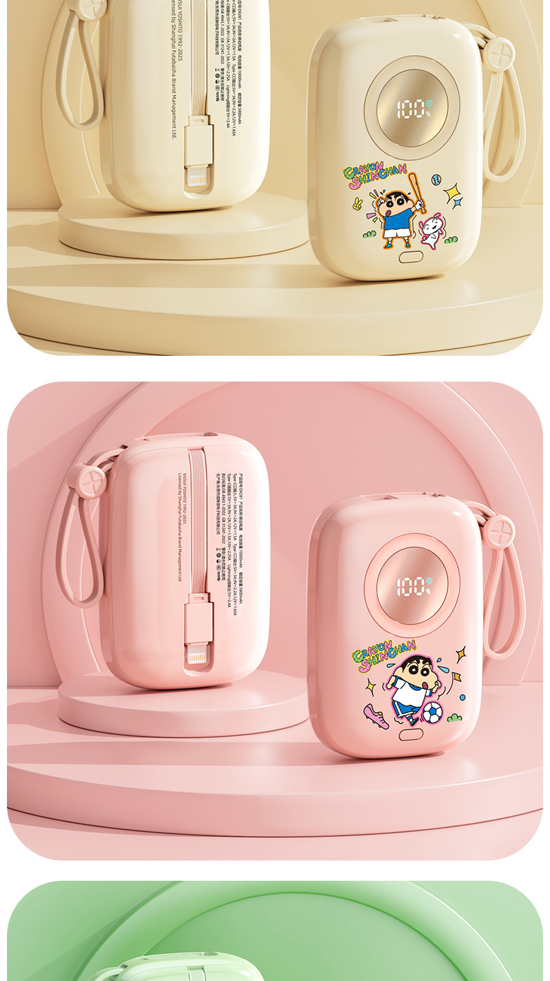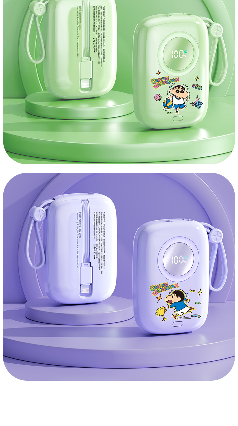 クレヨンしんちゃん共同ブランドのパワーバンクには、高速充電用のケーブルが付属しており、超大容量、コンパクト、ポータブル、かわいい漫画のパワーバンクです。