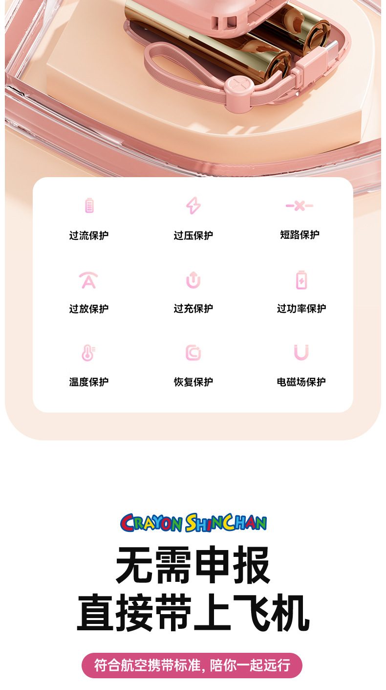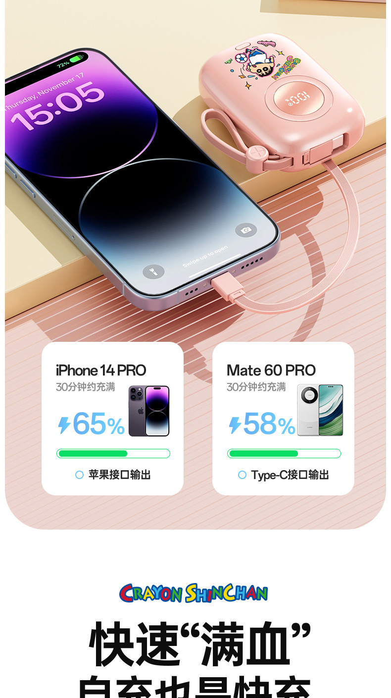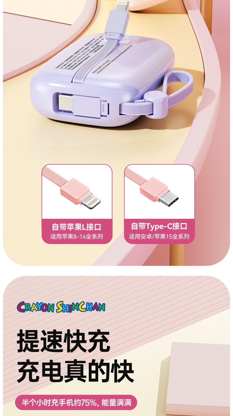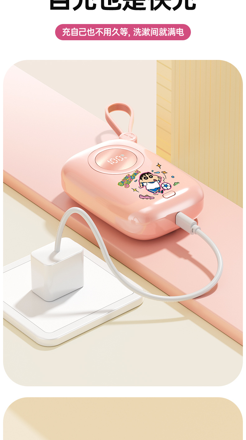 クレヨンしんちゃん共同ブランドのパワーバンクには、高速充電用のケーブルが付属しており、超大容量、コンパクト、ポータブル、かわいい漫画のパワーバンクです。