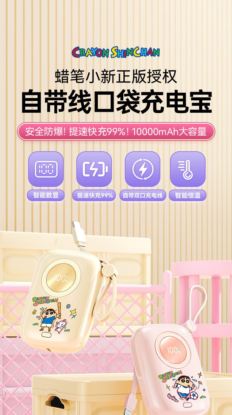 蜡笔小新自带线充电宝10000毫安大容量卡通可爱轻薄移动电源礼品