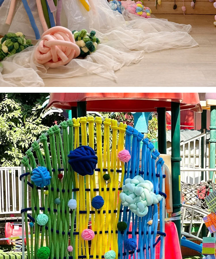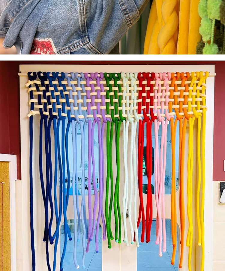 幼稚園アートエリアの壁装飾レイアウト素材カラフルな毛玉糸パーティション織りエリア DIY 吊り下げ装飾品