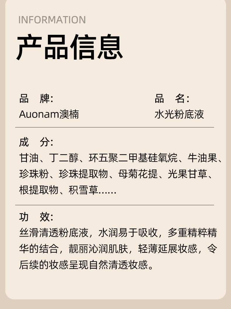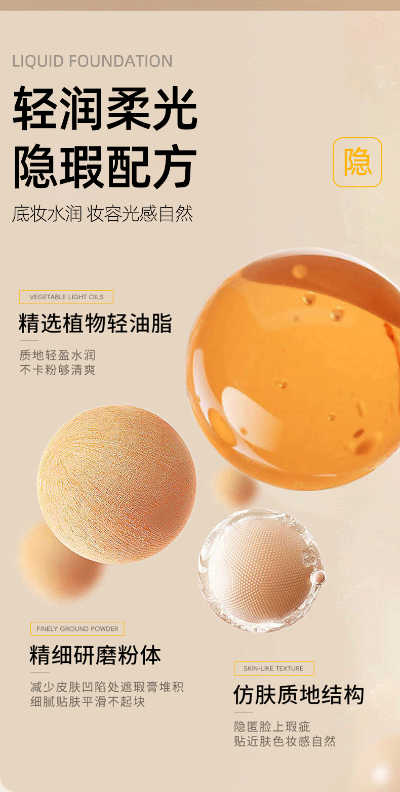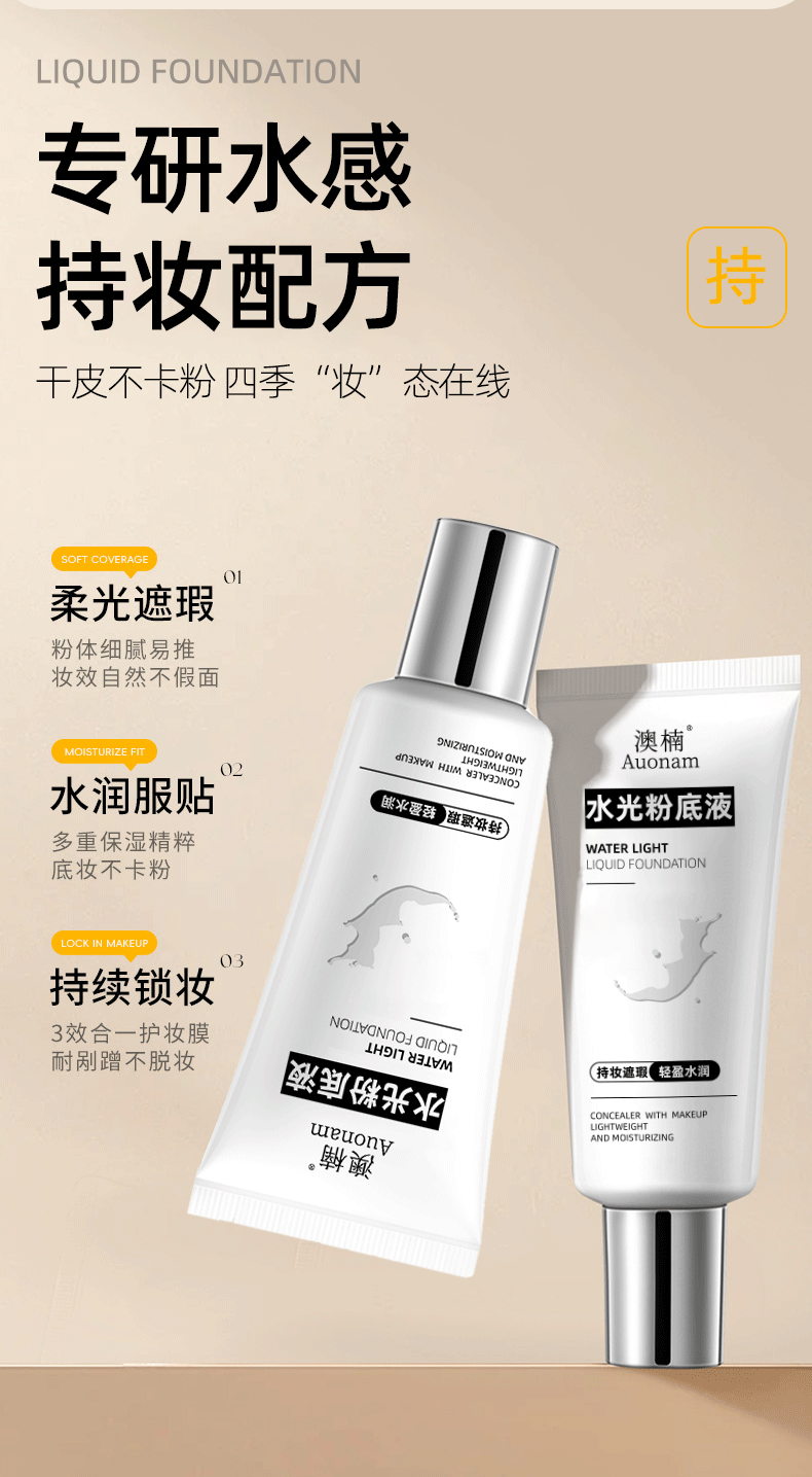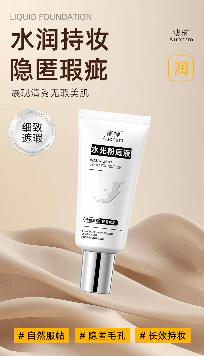 Aonan ウォーターライト リキッド ファンデーションは、長時間持続するコンシーラーで、軽く、潤いを与え、透明感があり、ニキビができず、粉が付着せず、一日中持続し、防水性があります。