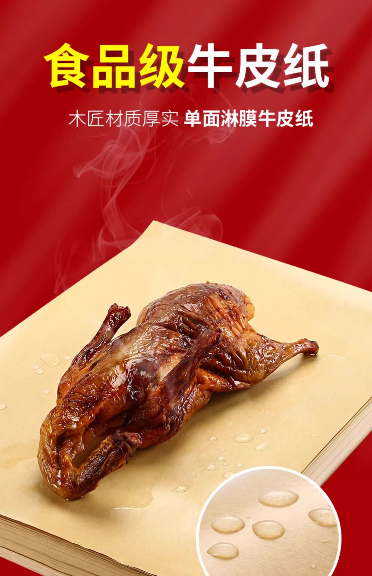 肉包用紙、ローストダック用牛皮紙、食品包装紙、精肉店用紙、使い捨て吸油紙、バーベキューロール、カスタム仕様