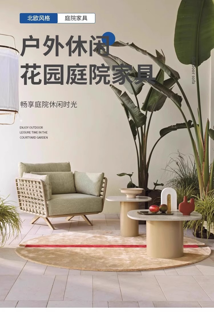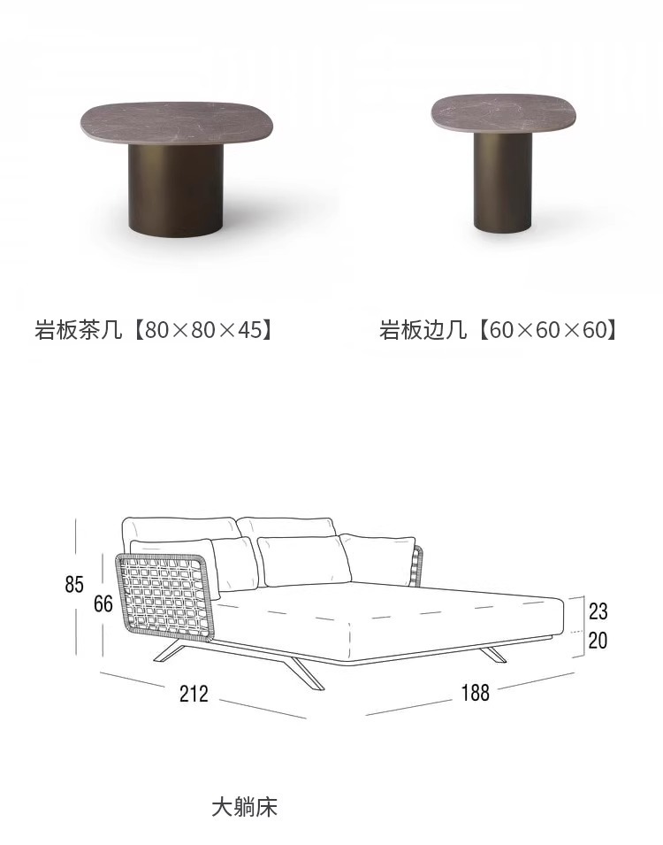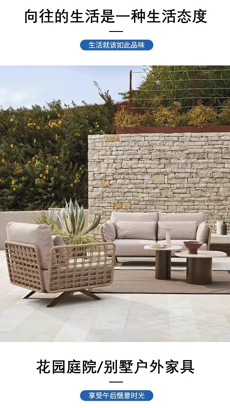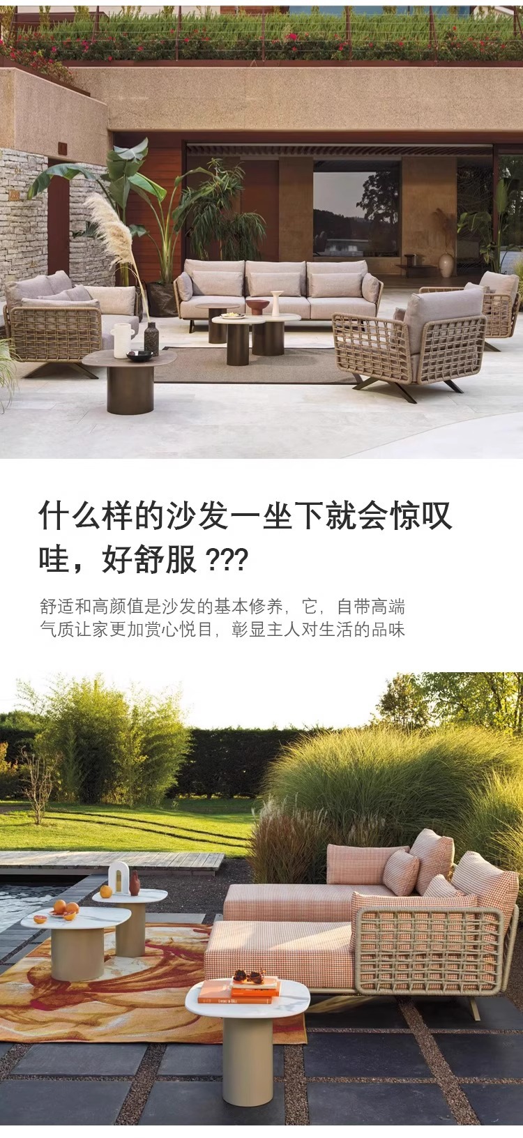 北欧屋外ソファコーヒーテーブル屋外中庭ガーデン防水日焼け止め籐リクライニングベッドヴィラ屋外レジャー家具