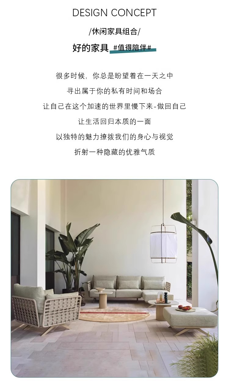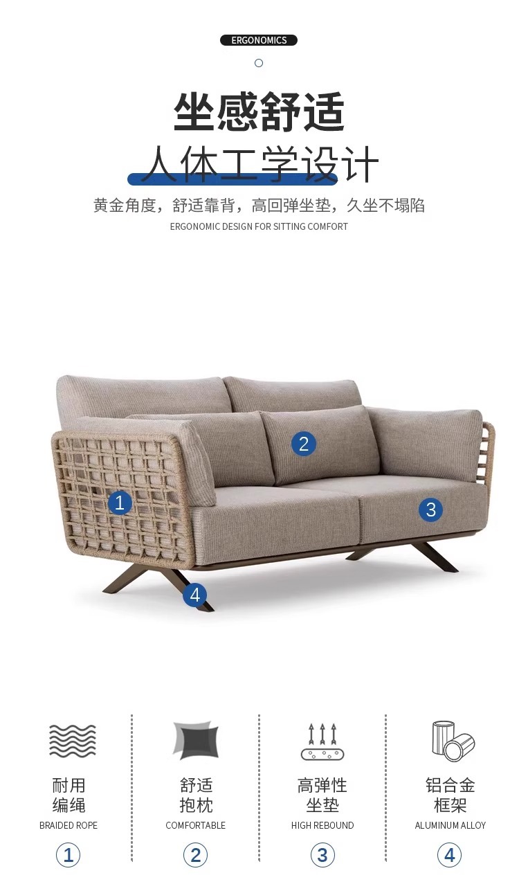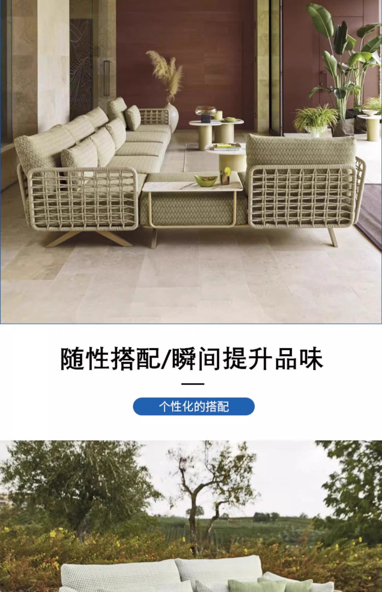 北欧屋外ソファコーヒーテーブル屋外中庭ガーデン防水日焼け止め籐リクライニングベッドヴィラ屋外レジャー家具