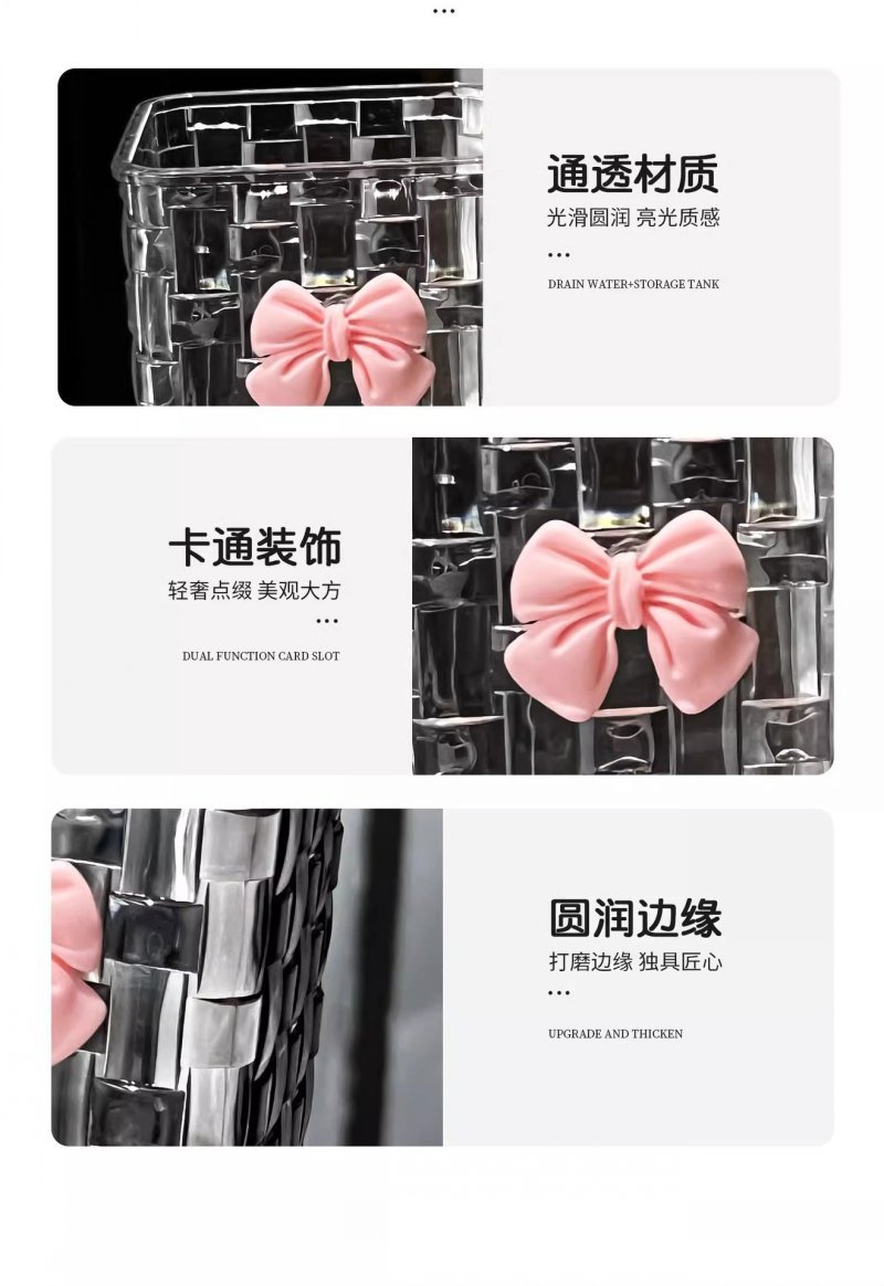 透明な白,透明な黒,半透明の白+リボン,透明黒+リボン,四角いブラシホルダー,ピンクのリボン(裏面粘着剤付き)