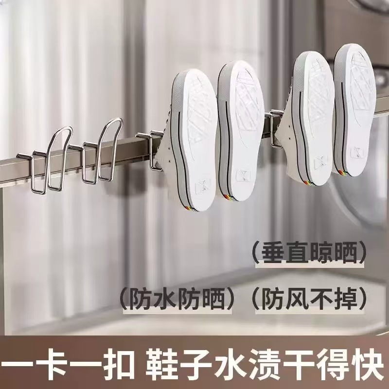 新款可调节晒鞋神器阳台防盗窗护栏杆窗外架家用免打孔晾鞋子挂钩