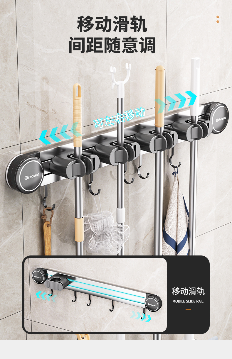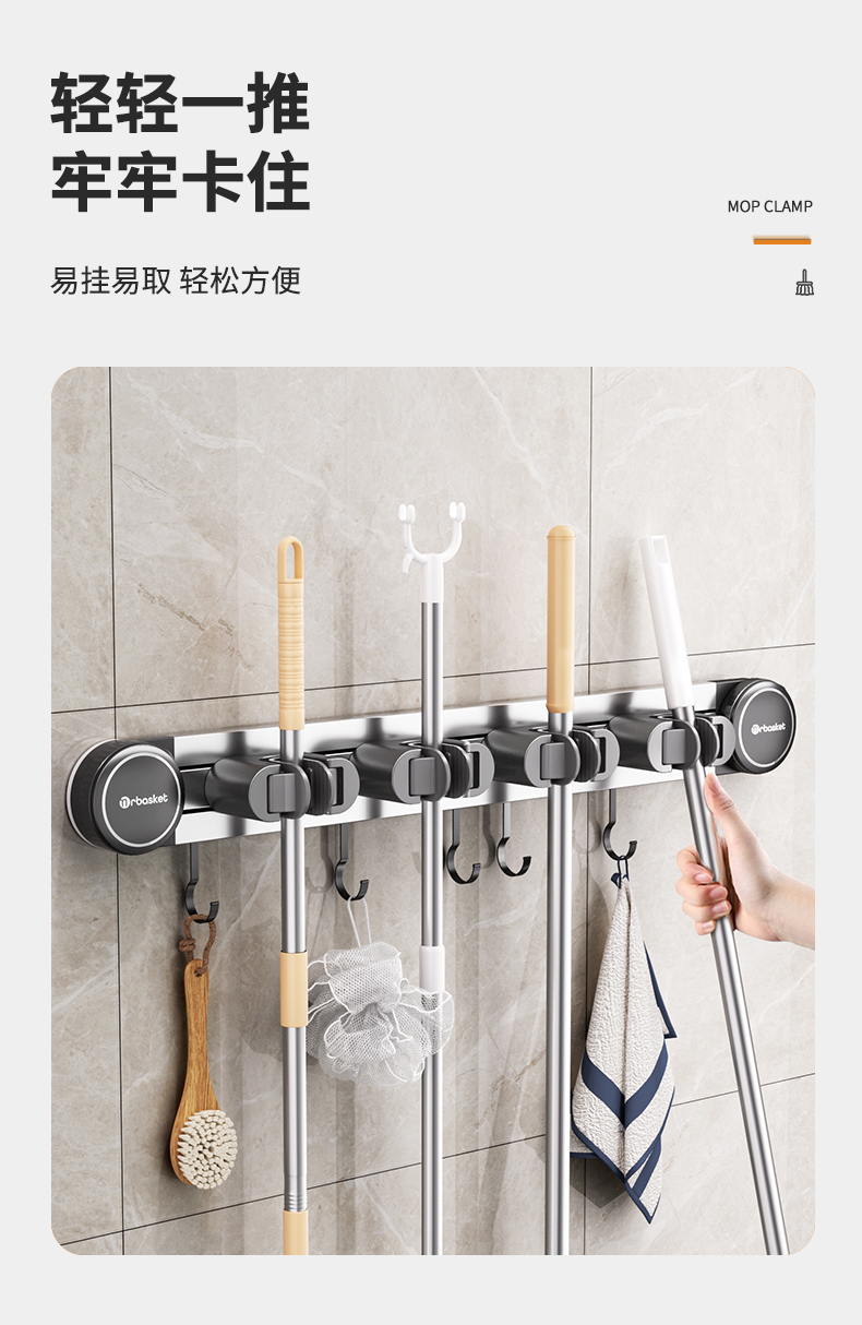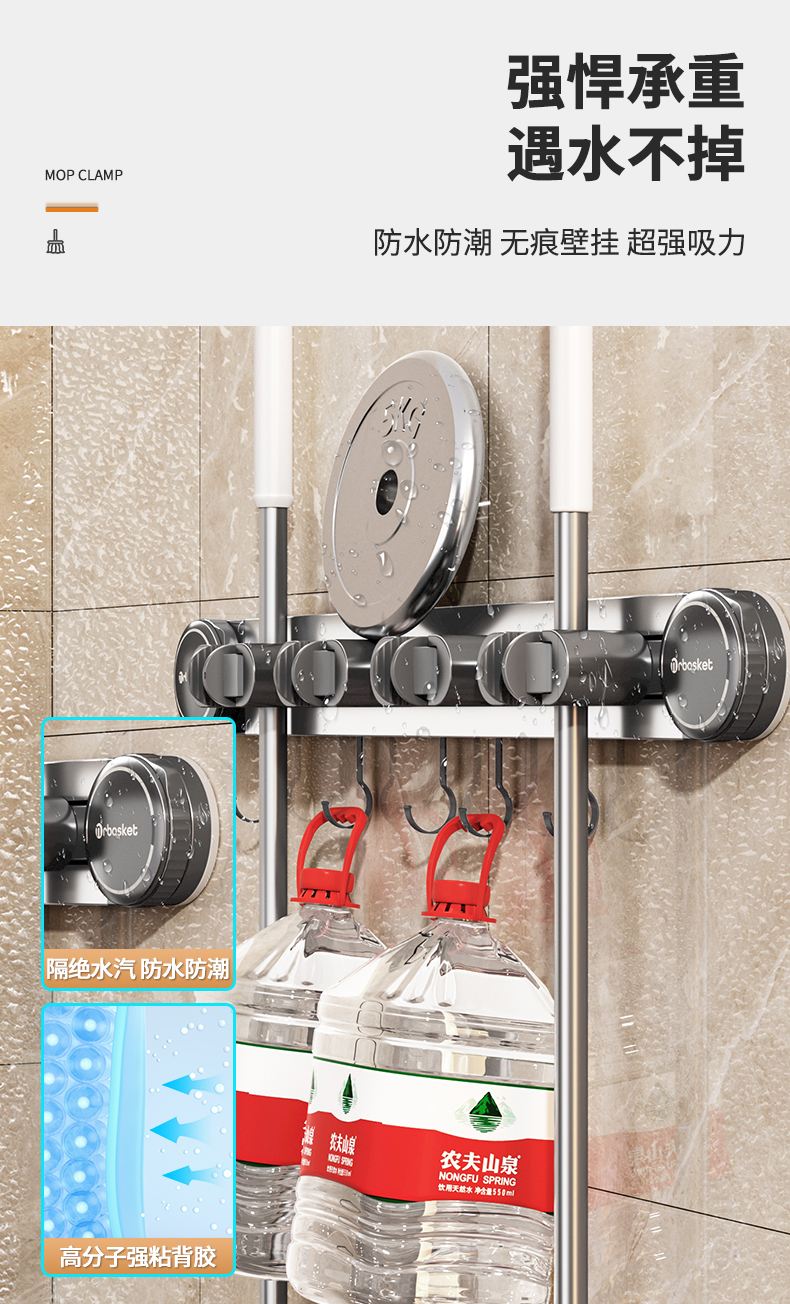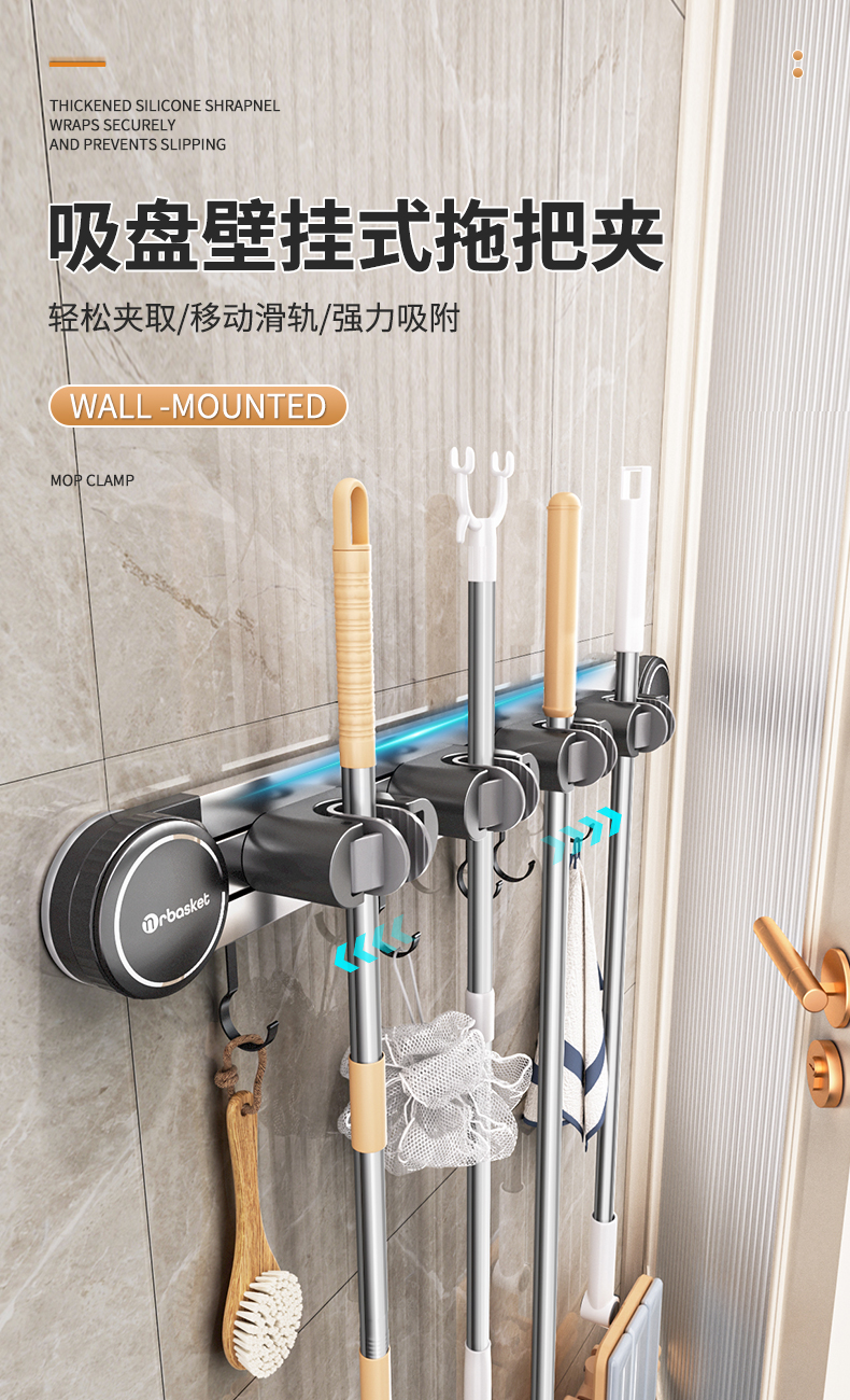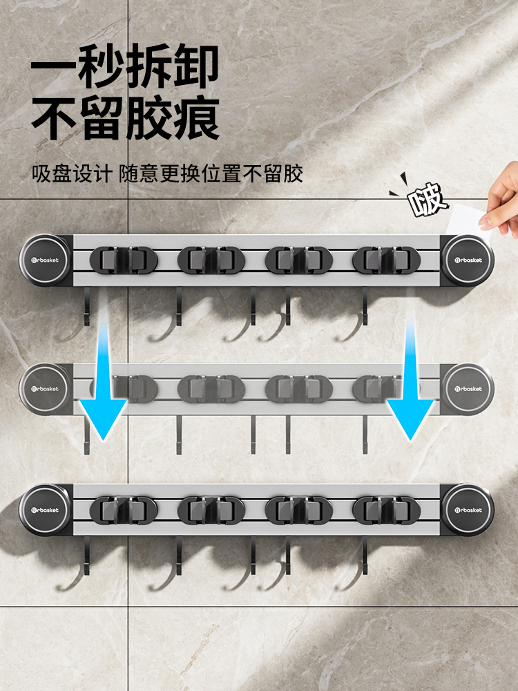 吸盤モップ壁掛けクリップ穴なし掛け掃除棚モップフック家庭用トイレ壁収納神器