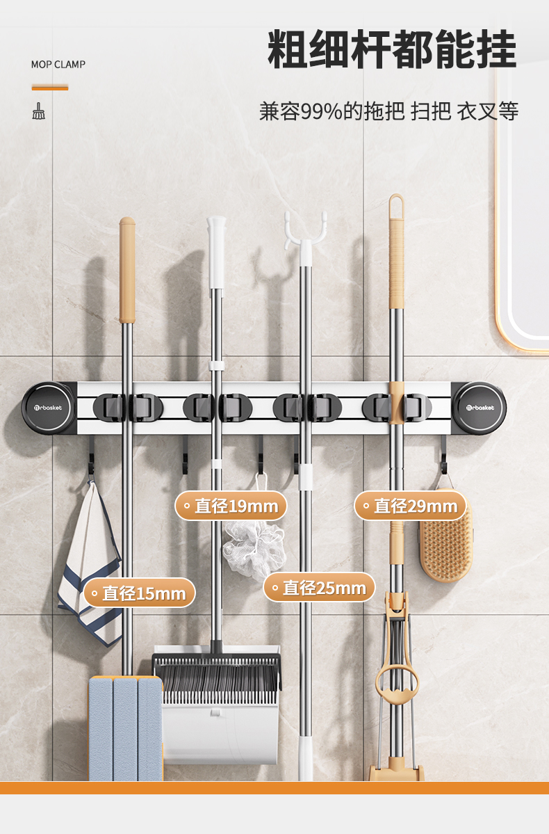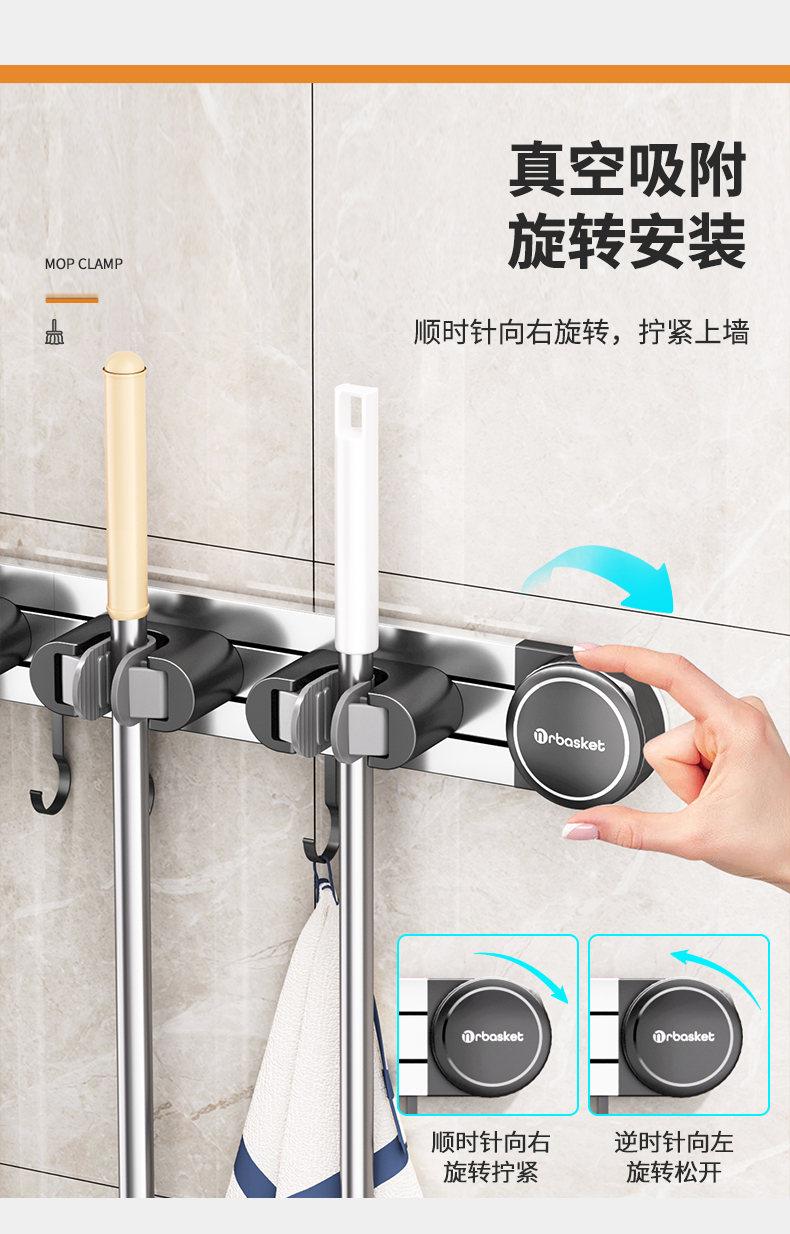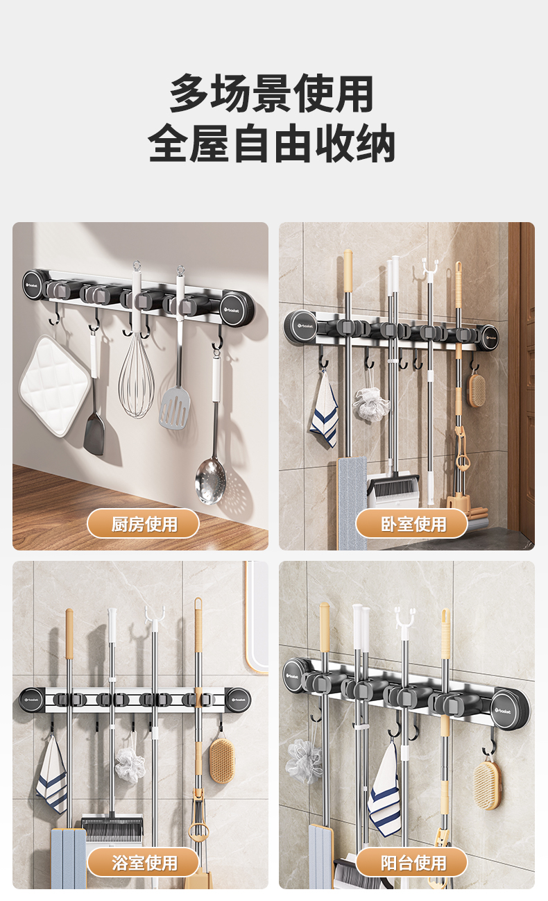 吸盤モップ壁掛けクリップ穴なしフックほうき固定棚ベランダ浴室ハンガートイレ収納神器
