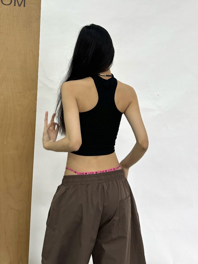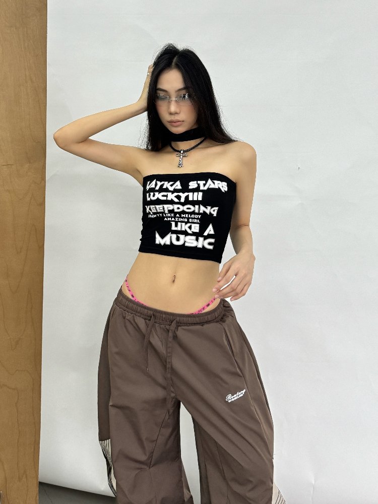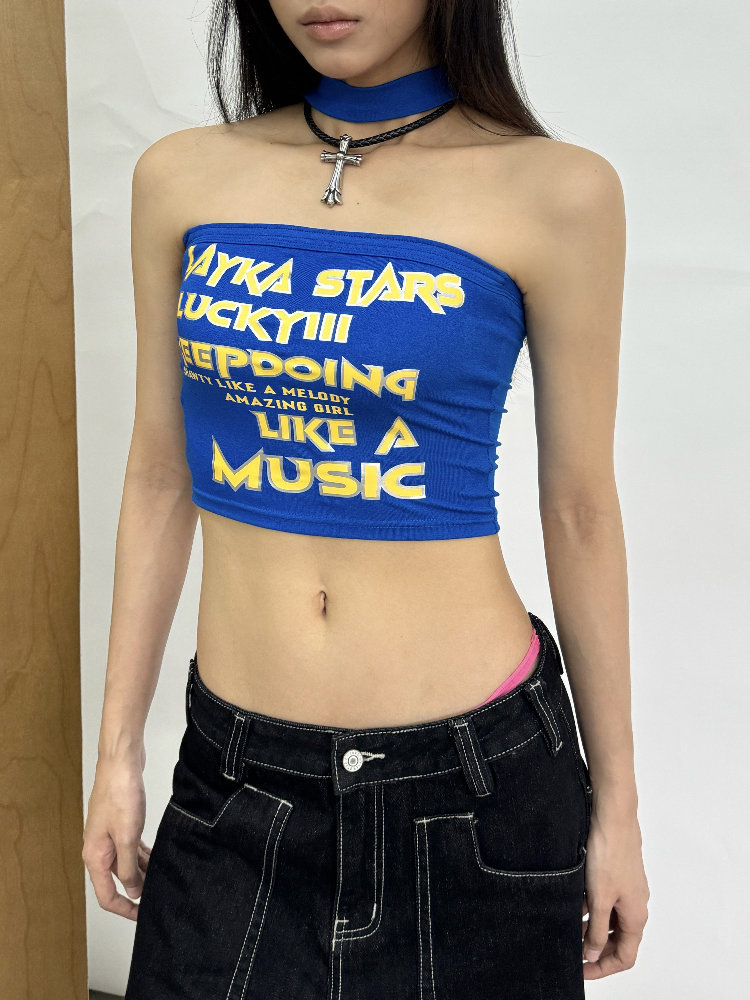 チューブトップ新ホットガールホルターネック痩身トッププリントニッチ2025アメリカンデザインスリムレターストリートダンス