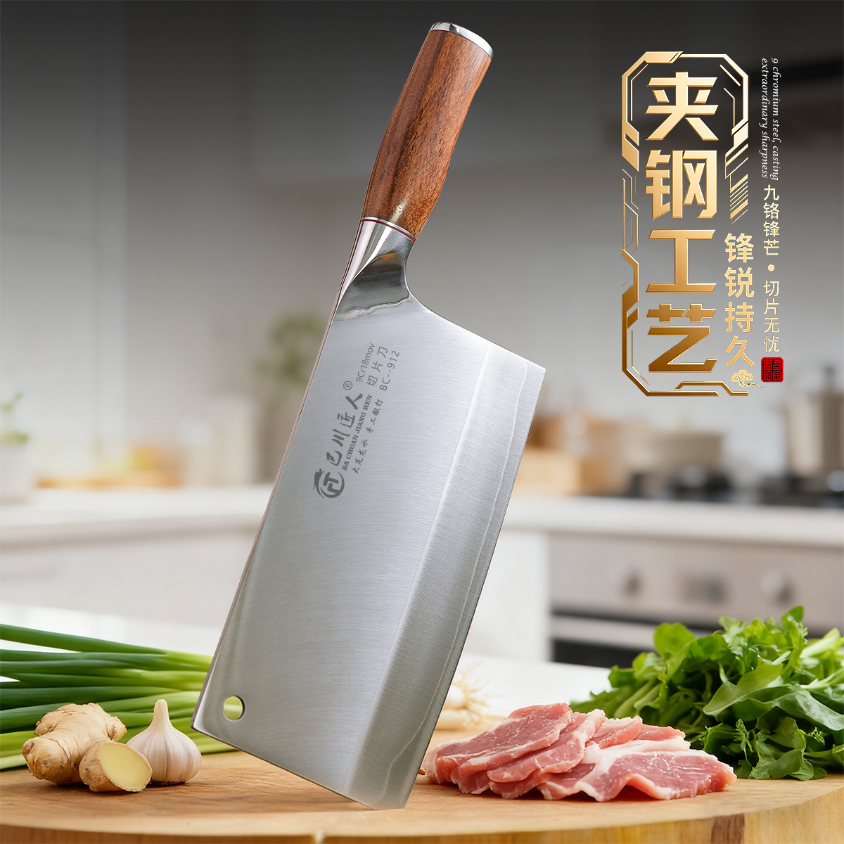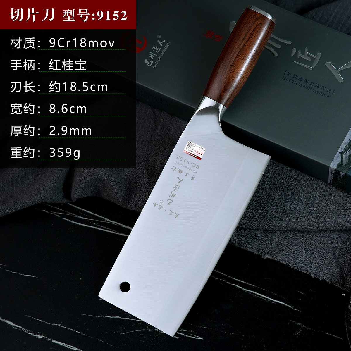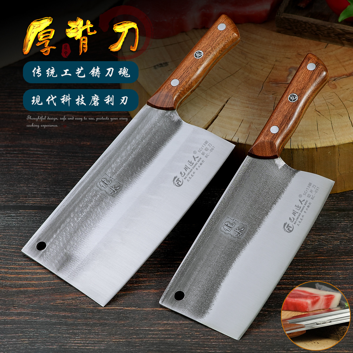 龙水巴川匠人牌手工锻打切片刀9cr18mov夹钢菜刀家用厨师切片刀